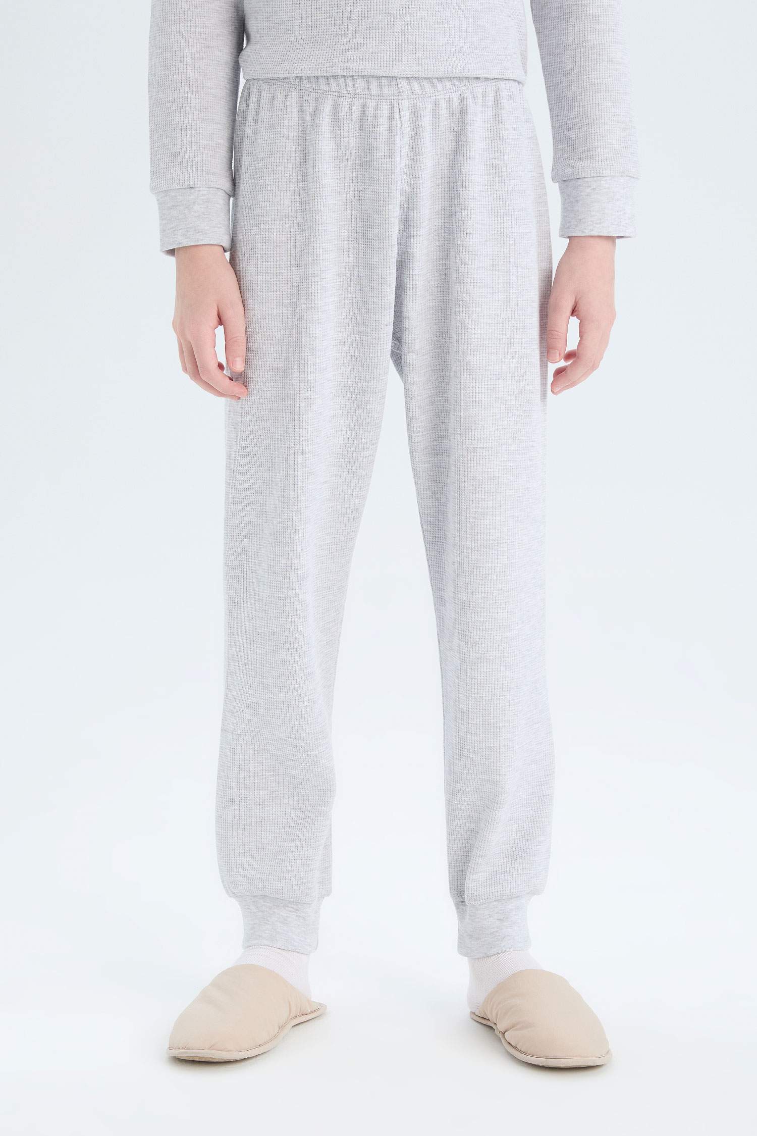 Пижама детская мальчиковая вафельная с длинными рукавами и брюками на резинке DeFacto