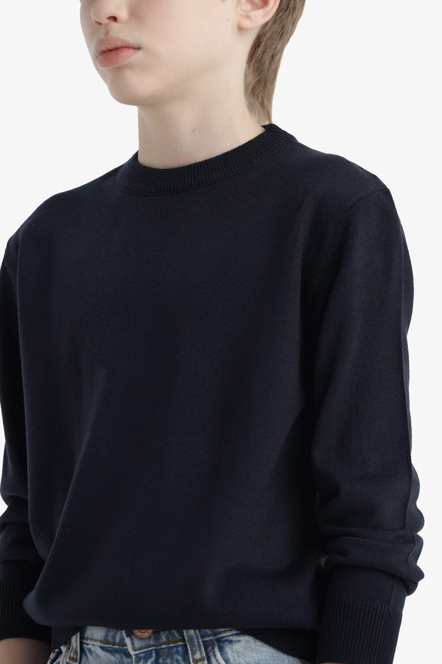 Базовый детский свитер для мальчиков школьного возраста с круглым воротником, выполненный в прямом крое из трикотажного материала