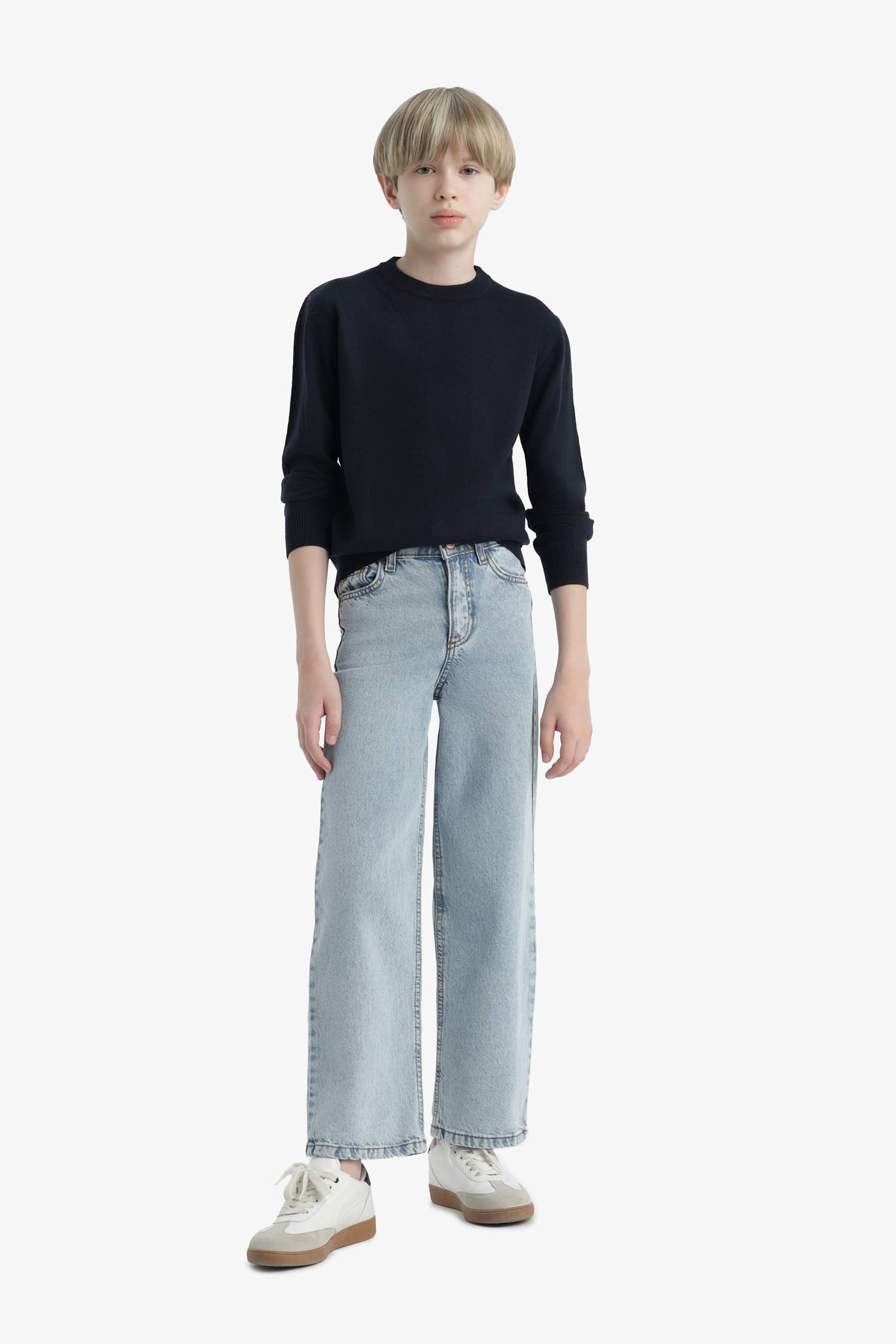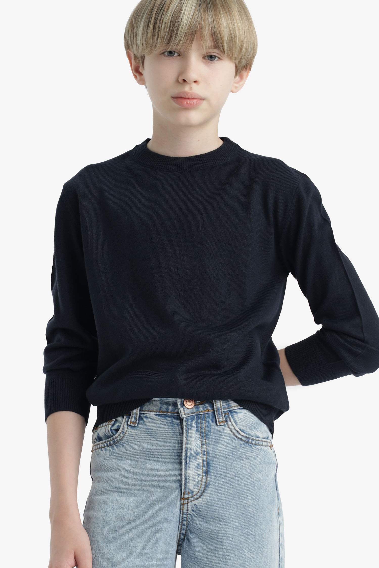 Свитер детский для мальчиков школьный базовый прямой с круглым воротником DeFacto