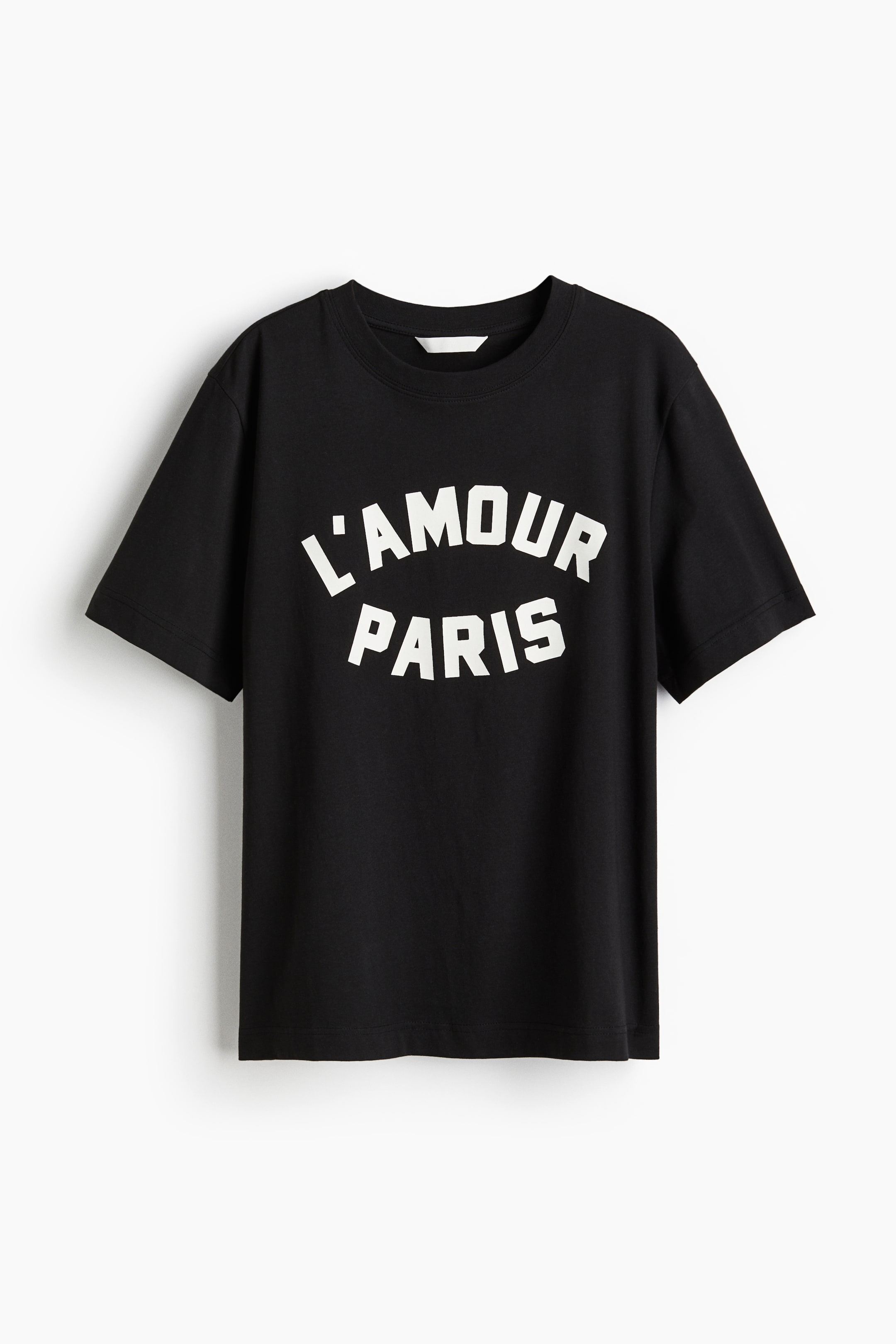 Хлопковая футболка с велосипедным воротником, принтом на передней части и свободным кроем