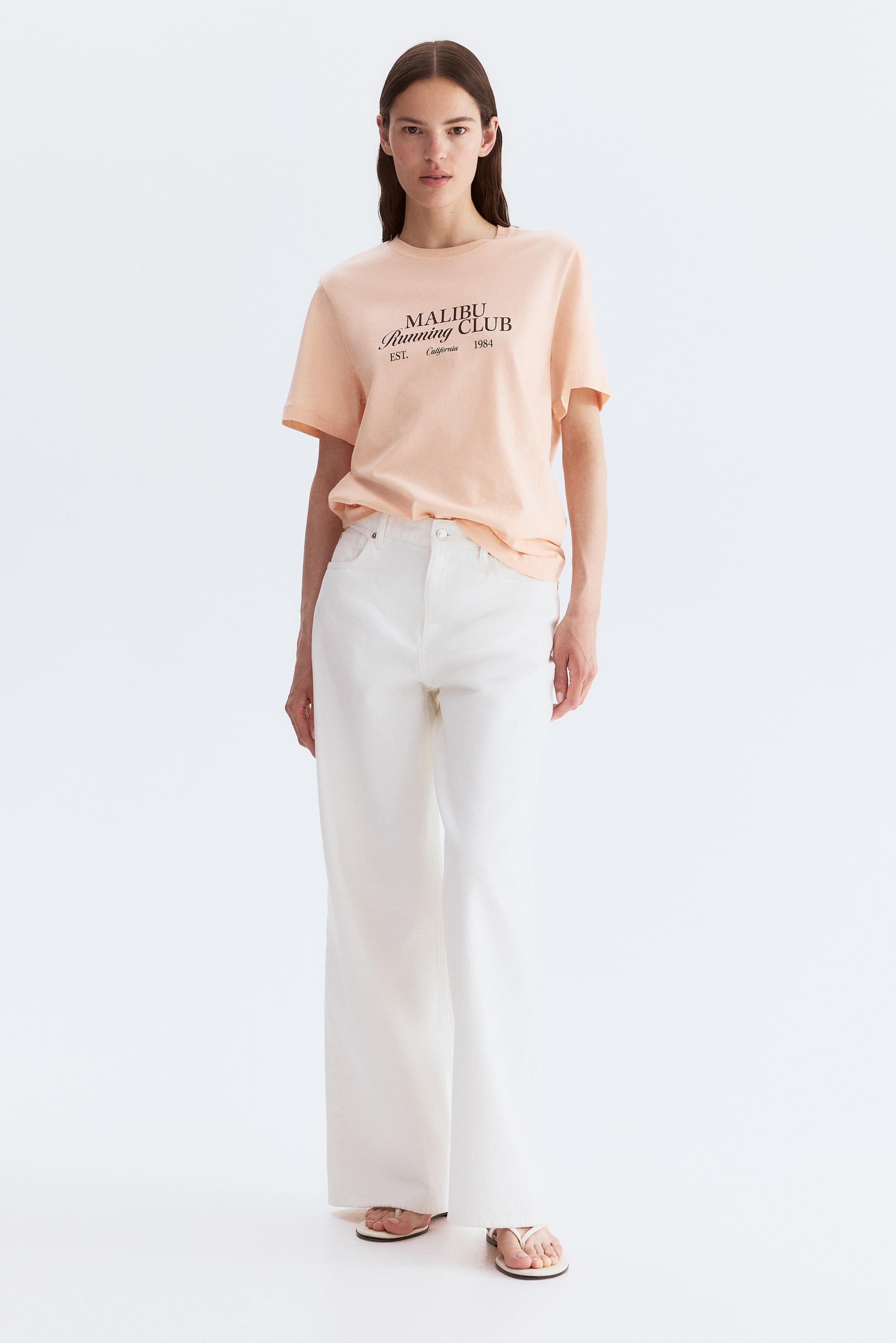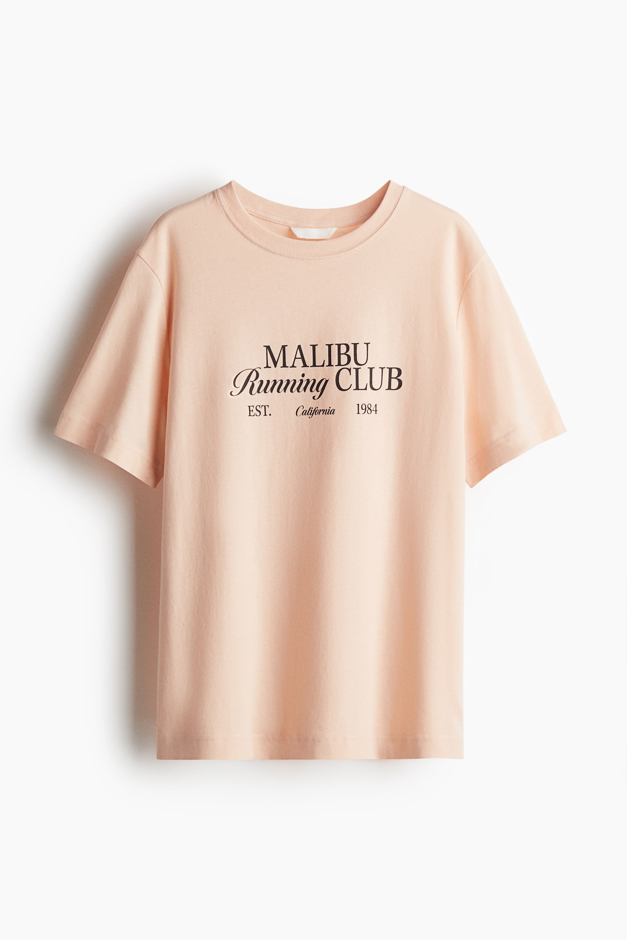 Хлопковая футболка с велосипедным воротником, принтом на передней части и свободным кроем