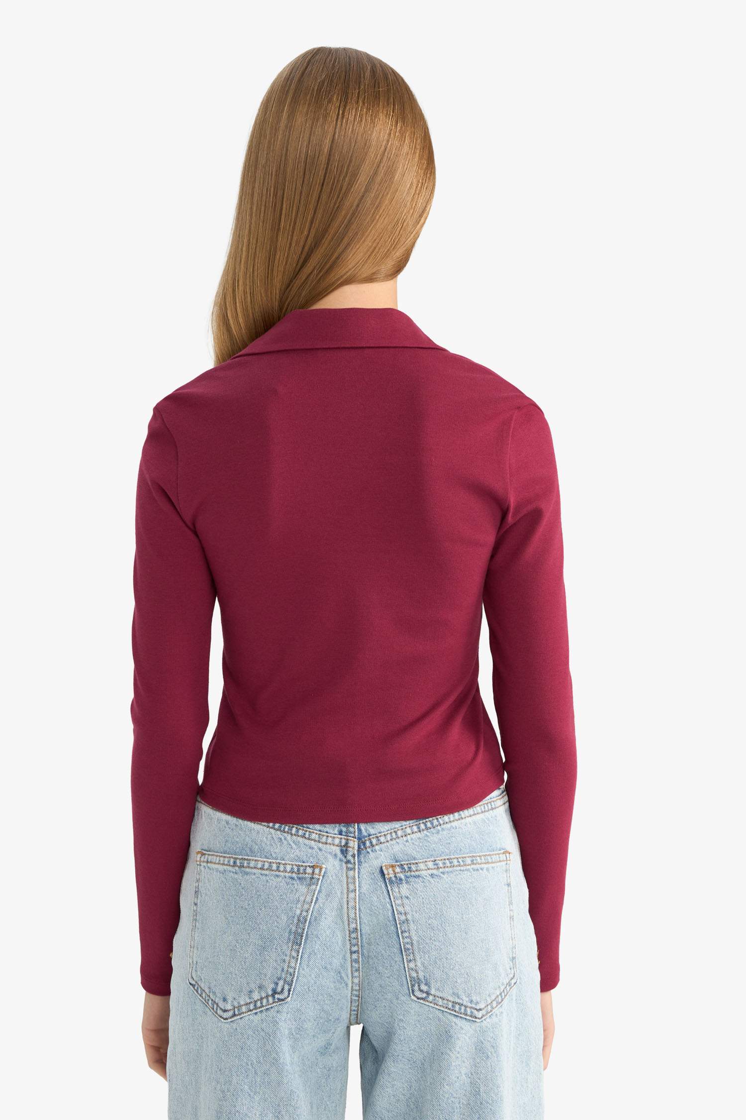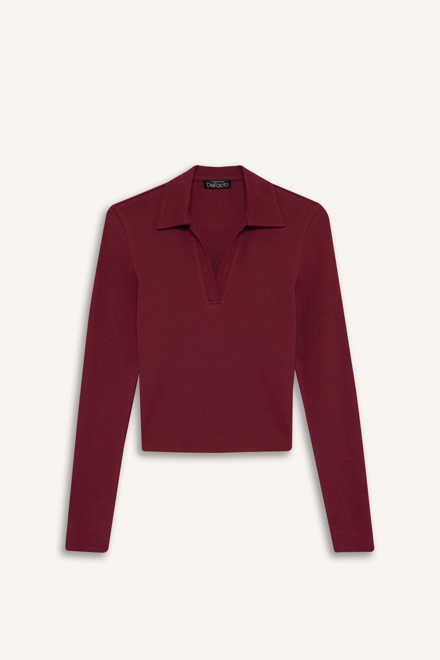 Футболка женская приталенная поло базовый гладкий модал длинный рукав DeFacto