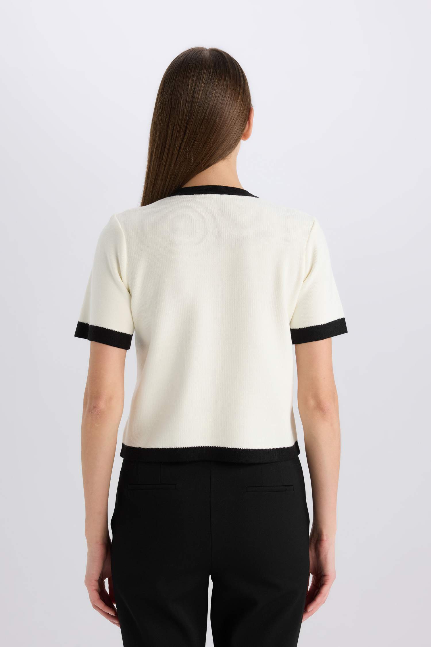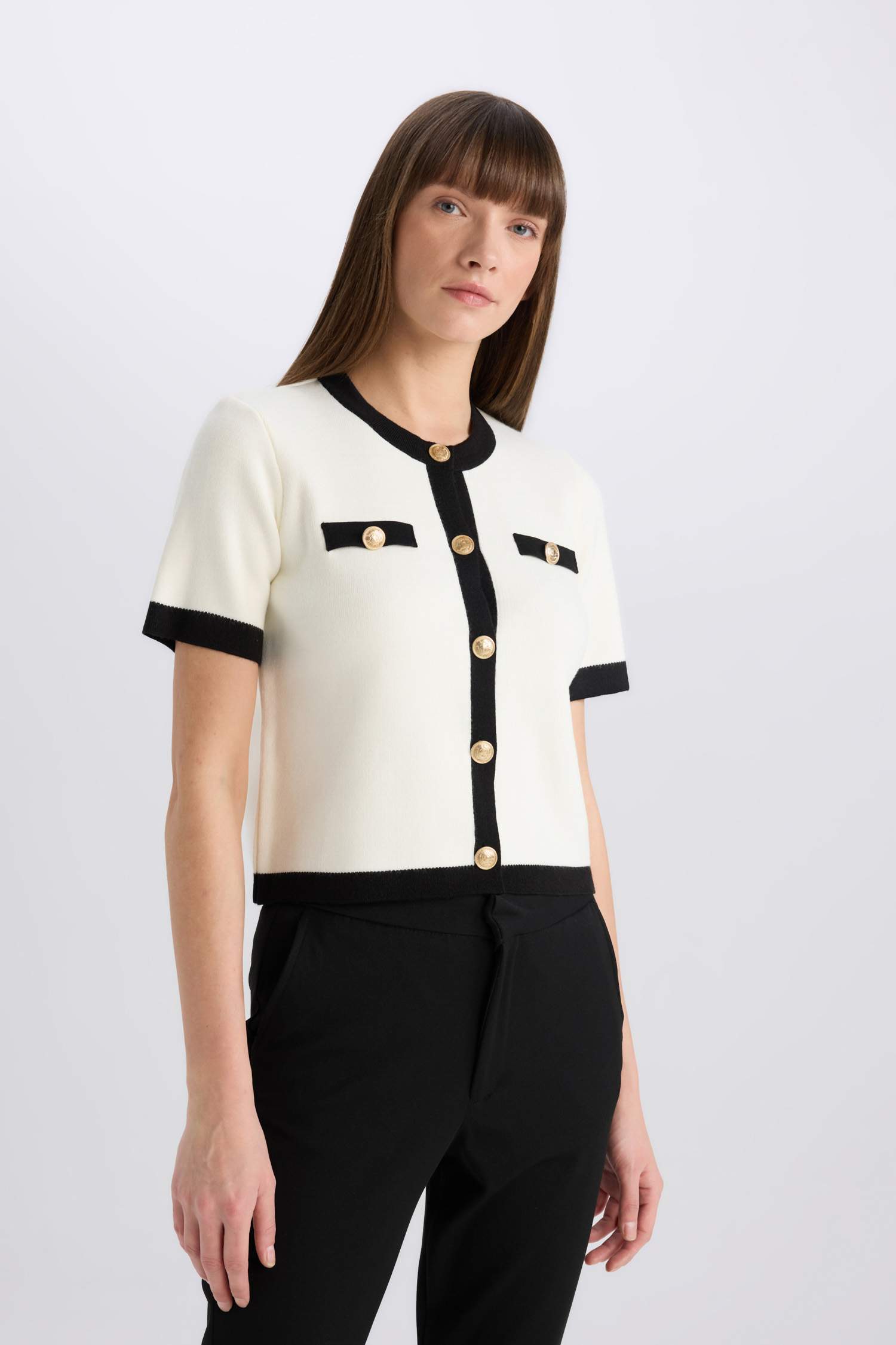 Кардиган женский Regular Fit с велосипедным воротником и короткими рукавами DeFacto, Reňk: Экрю, Ölçeg: M