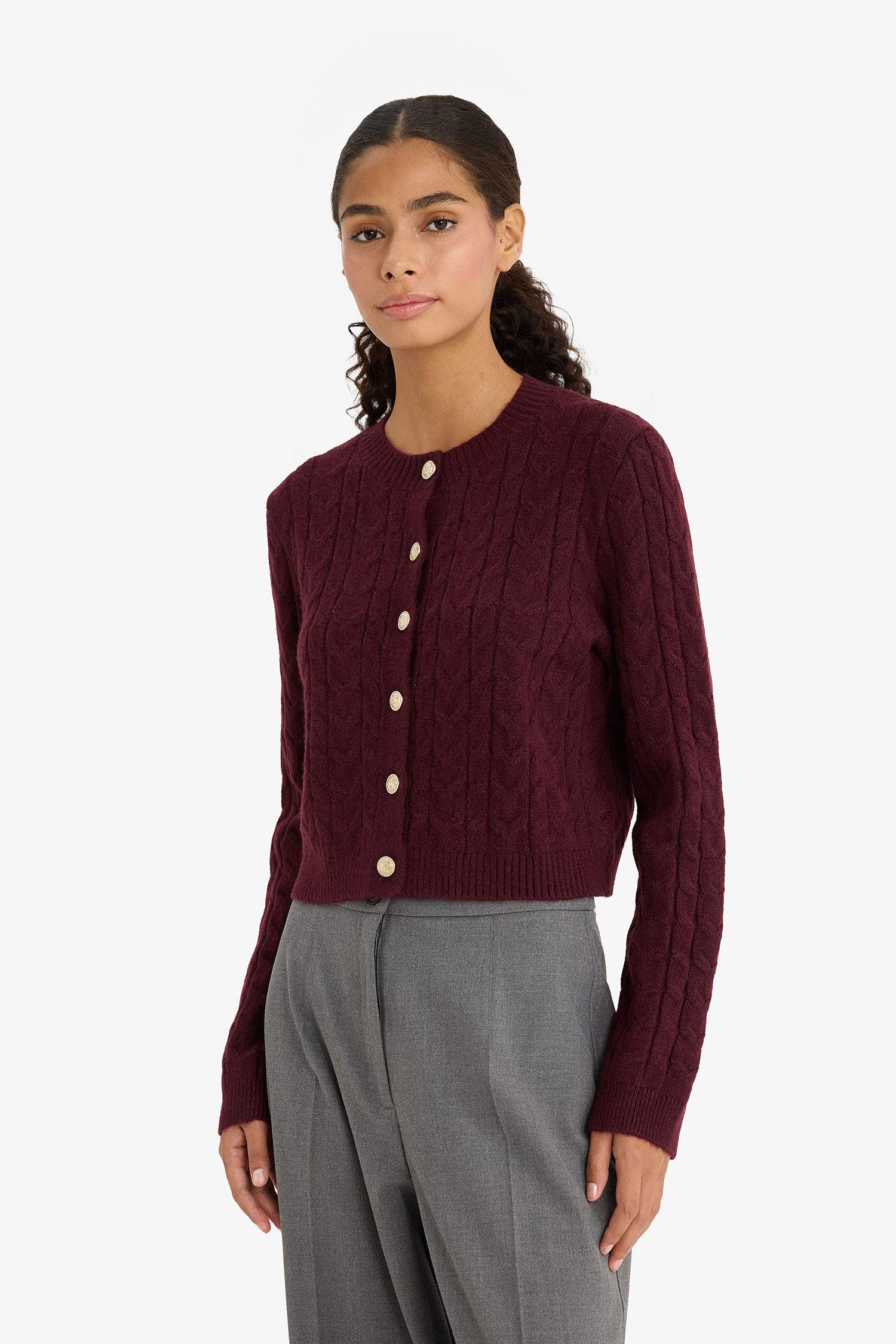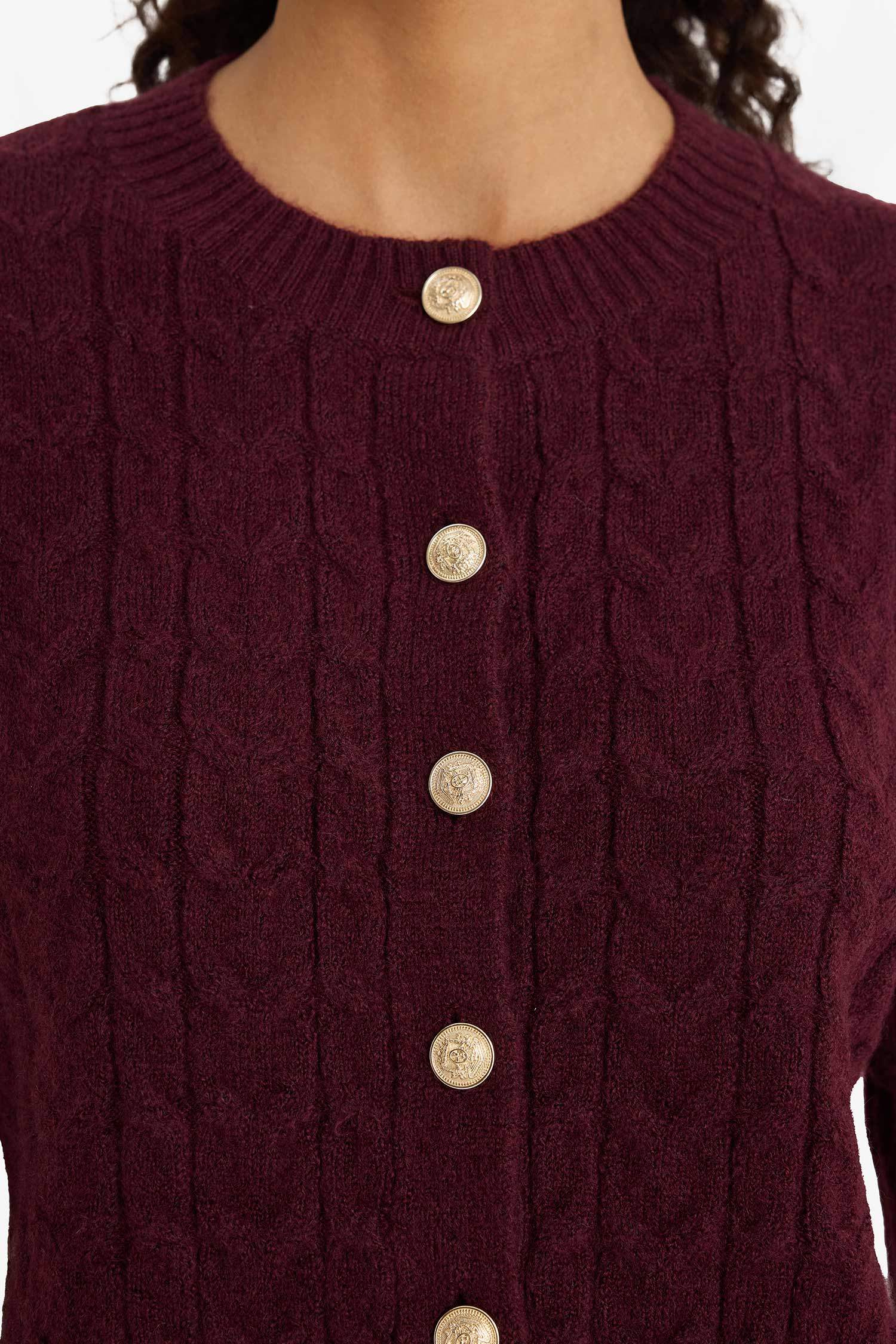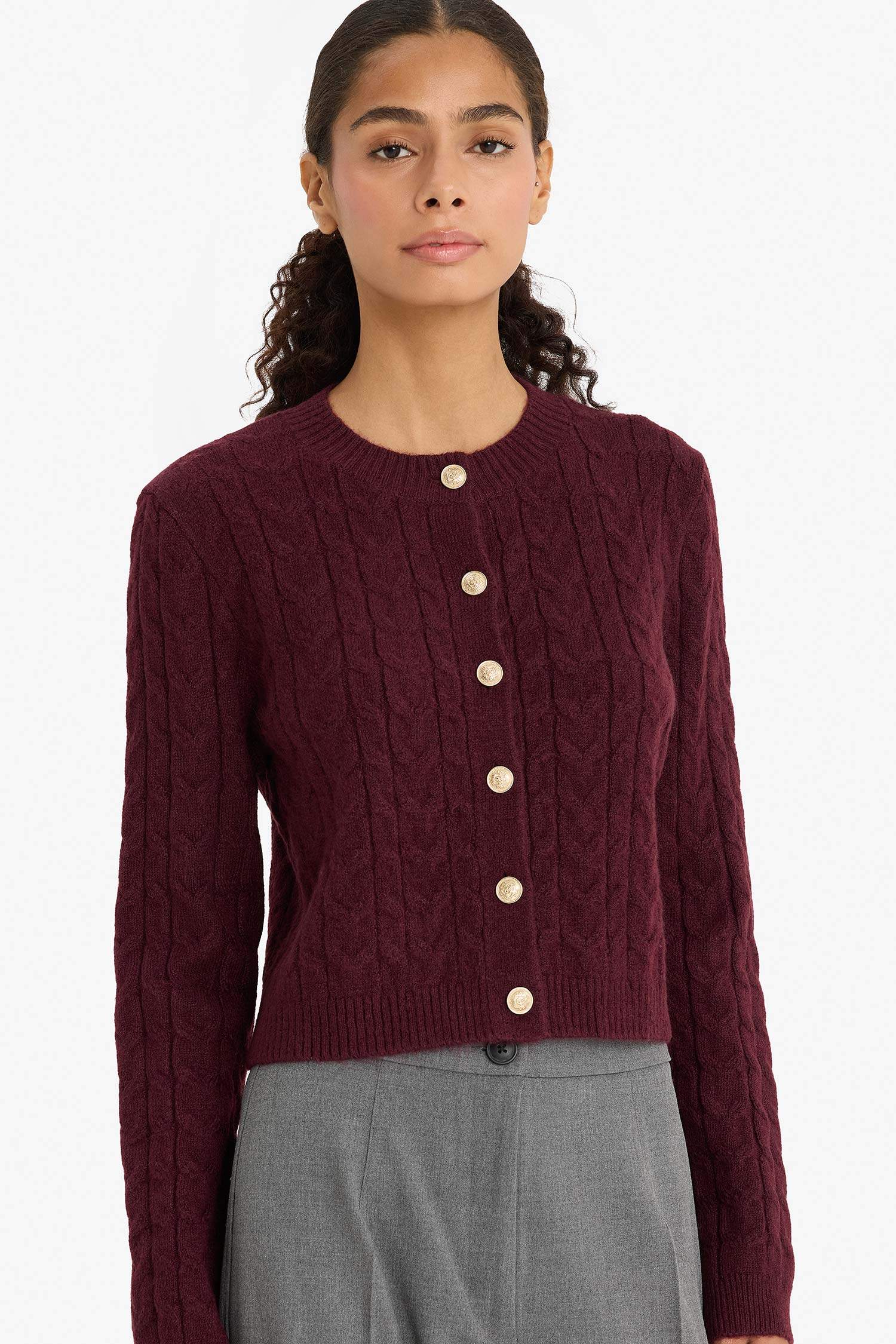 Кардиган женский Regular Fit с велосипедным воротником и селанской вязкой DeFacto, Reňk: Çuňňur gyzyl , Ölçeg: L