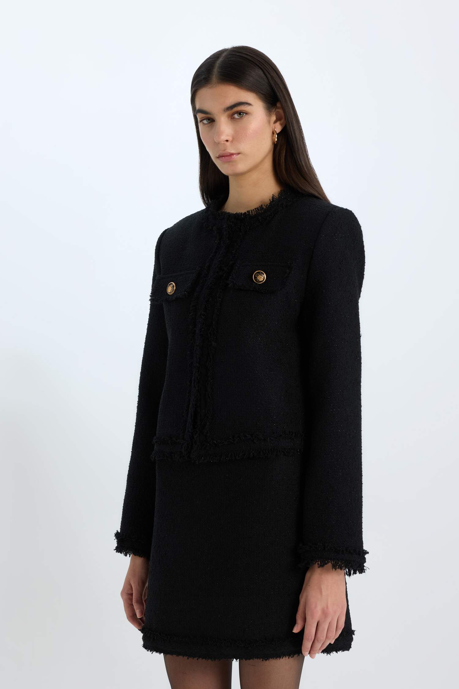 Блейзер женский твид укороченный с велосипедным воротником DeFacto
