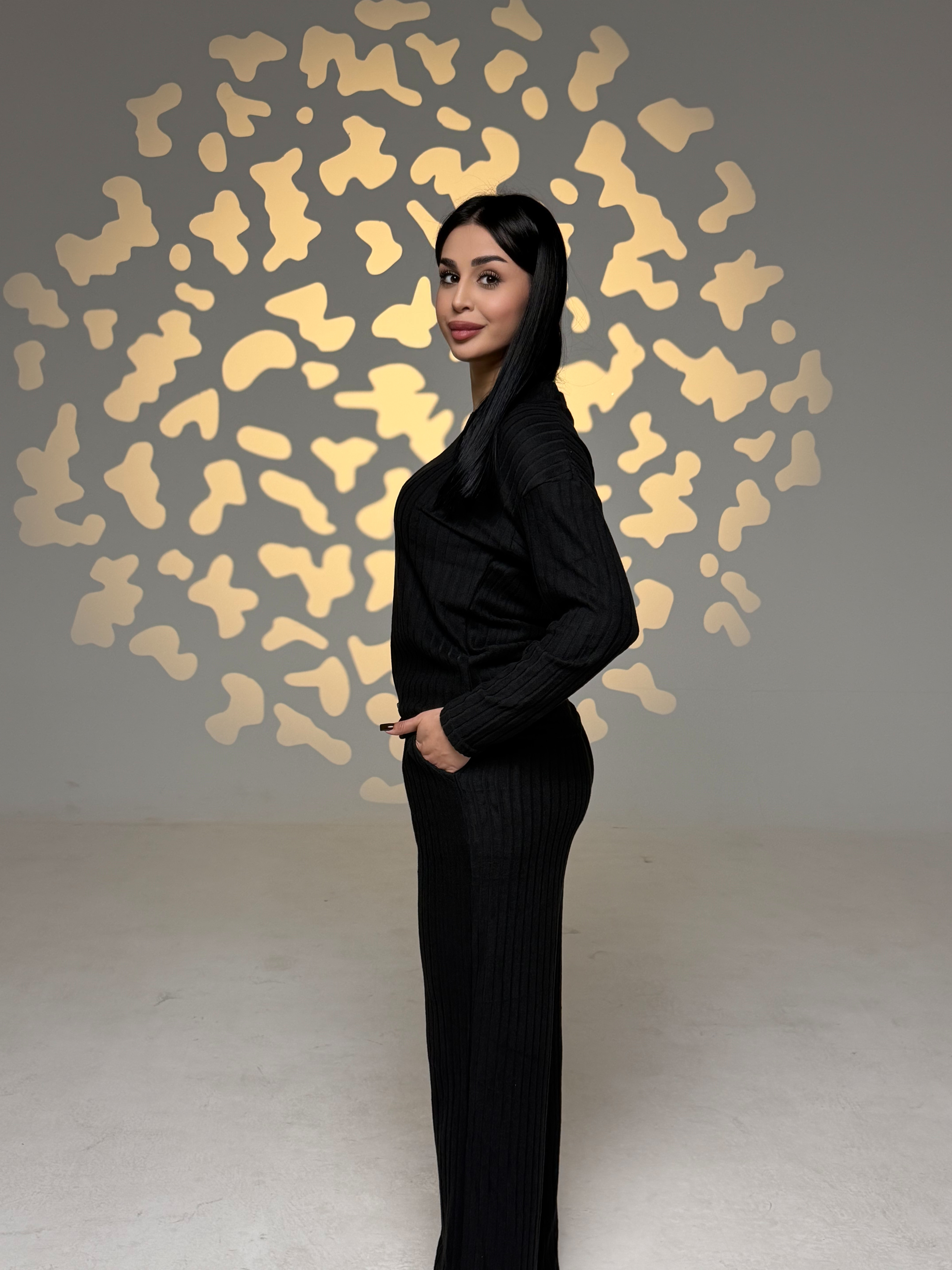 Женский стильный комплект чёрного цвета для дома и отдыха