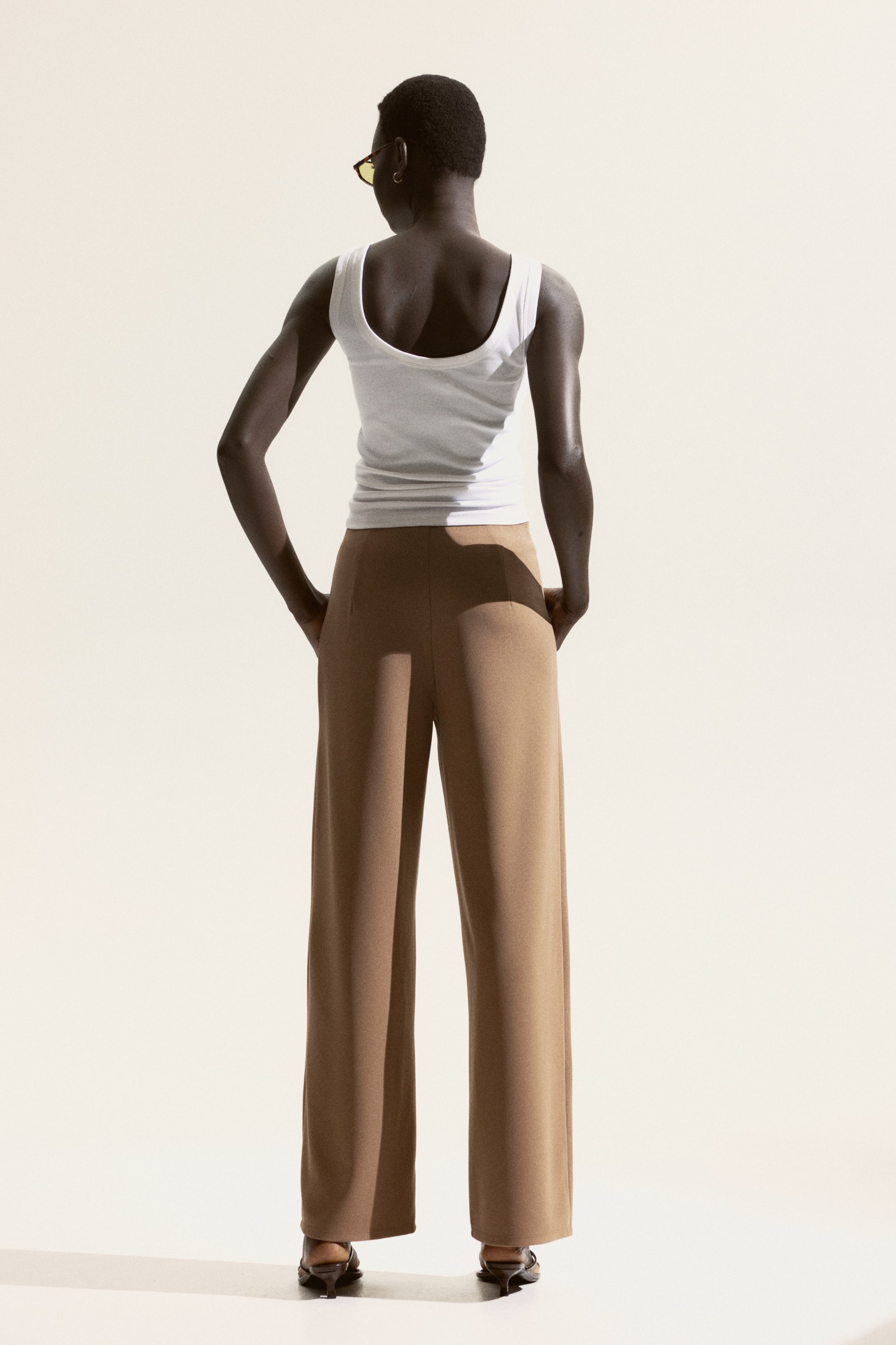 Бренд - H&M; Высота талии - Завышенная; Длина - Длинный; Модель - Стандарт; Ткань - Джерси; Толщина - Толстый; Узор - Однотонный; Цвет - Коричневый; Штанина - Широкая