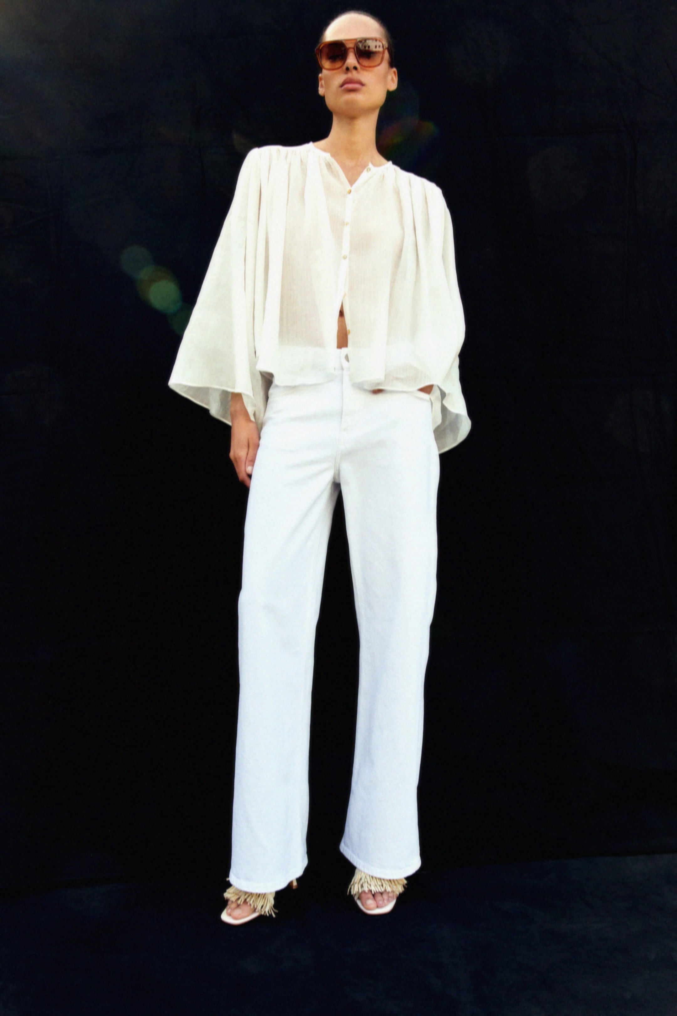 Бренд - H&M; Высота талии - Завышенная; Длина - Длинный; Модель - Узкий; Ткань - Типа деним; Узор - Однотонный; Цвет - Белый; Штанина - Широкая