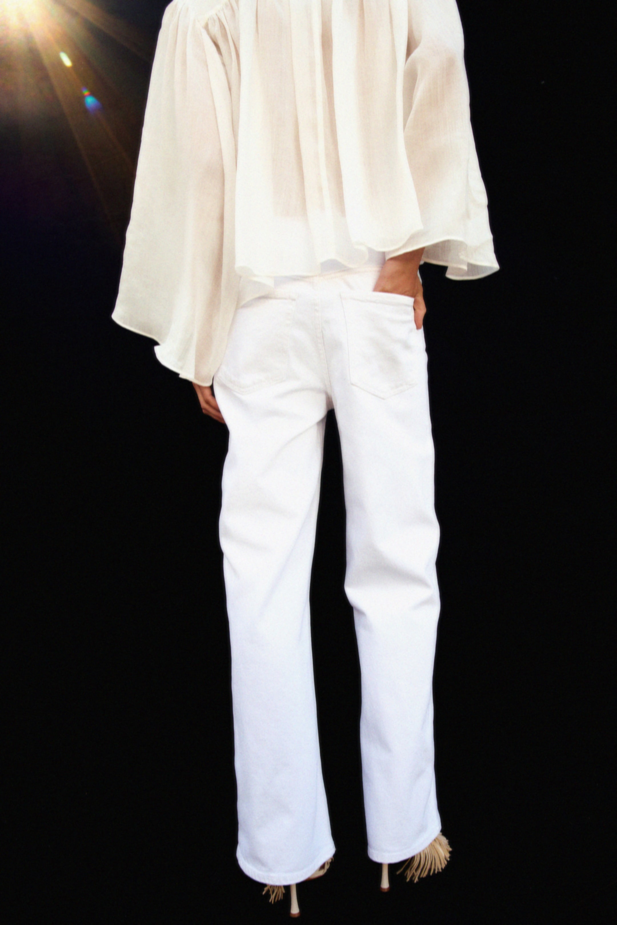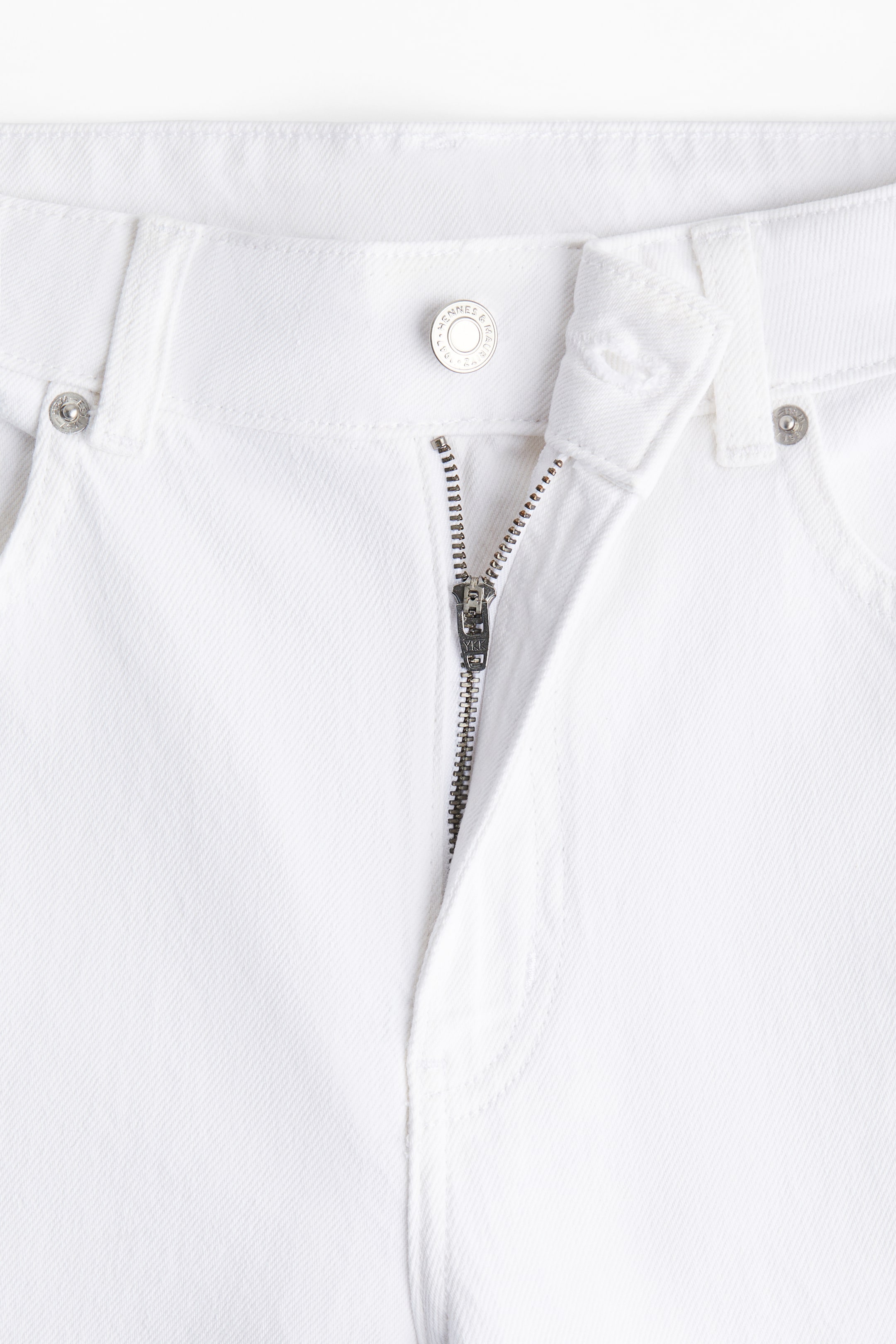 Бренд - H&M; Высота талии - Завышенная; Длина - Длинный; Модель - Узкий; Ткань - Типа деним; Узор - Однотонный; Цвет - Белый; Штанина - Широкая
