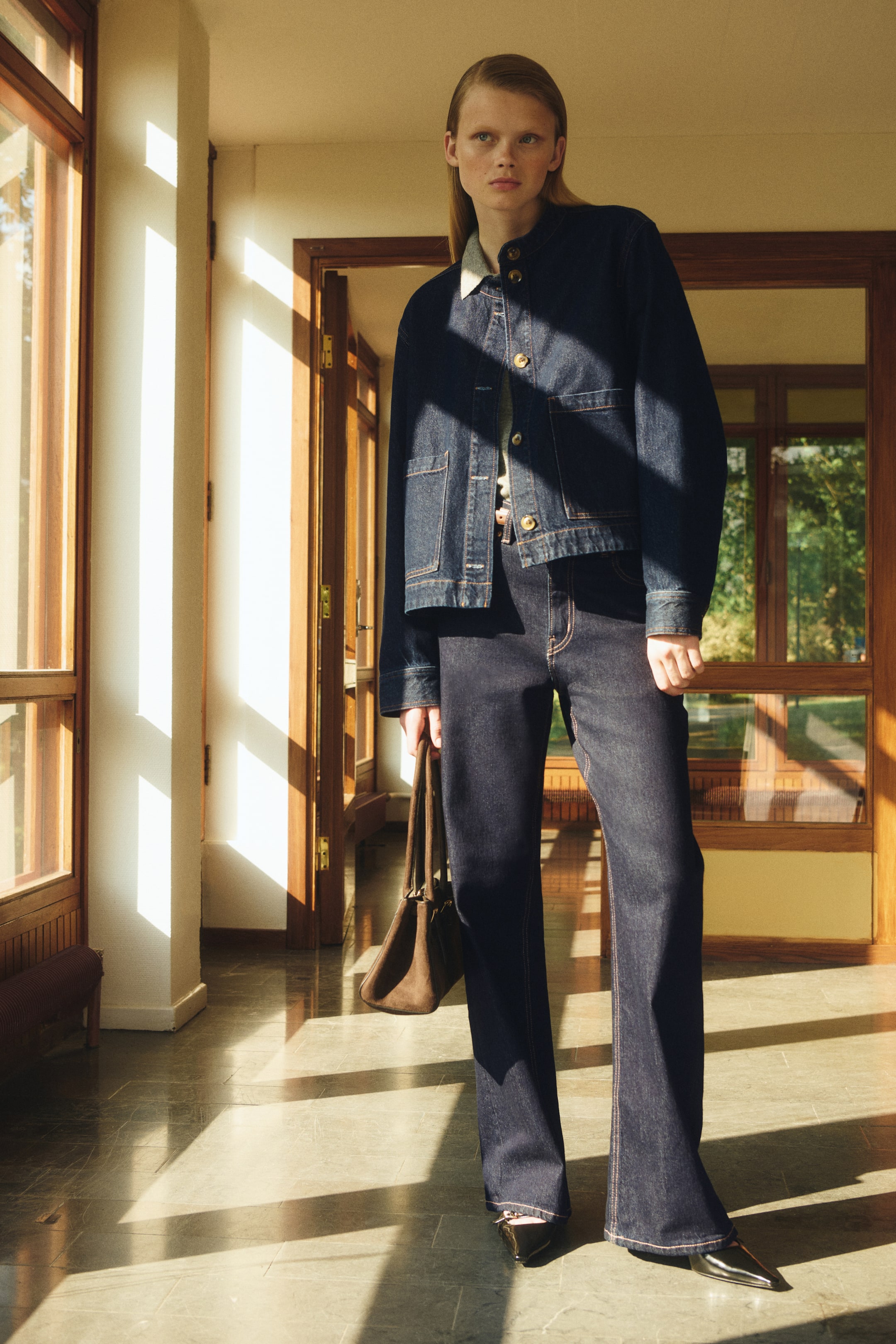 Бренд - H&M; Высота талии - Завышенная; Длина - Длинный; Модель - Узкий; Ткань - Типа деним; Узор - Однотонный; Цвет - Темно-синий; Штанина - Широкая