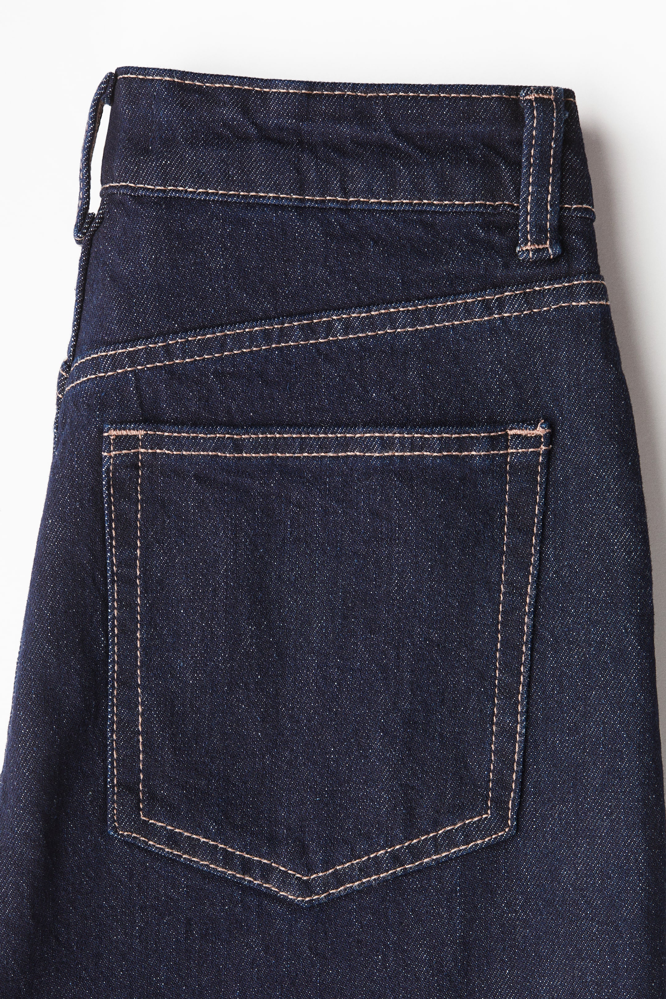 Бренд - H&M; Высота талии - Завышенная; Длина - Длинный; Модель - Узкий; Ткань - Типа деним; Узор - Однотонный; Цвет - Темно-синий; Штанина - Широкая