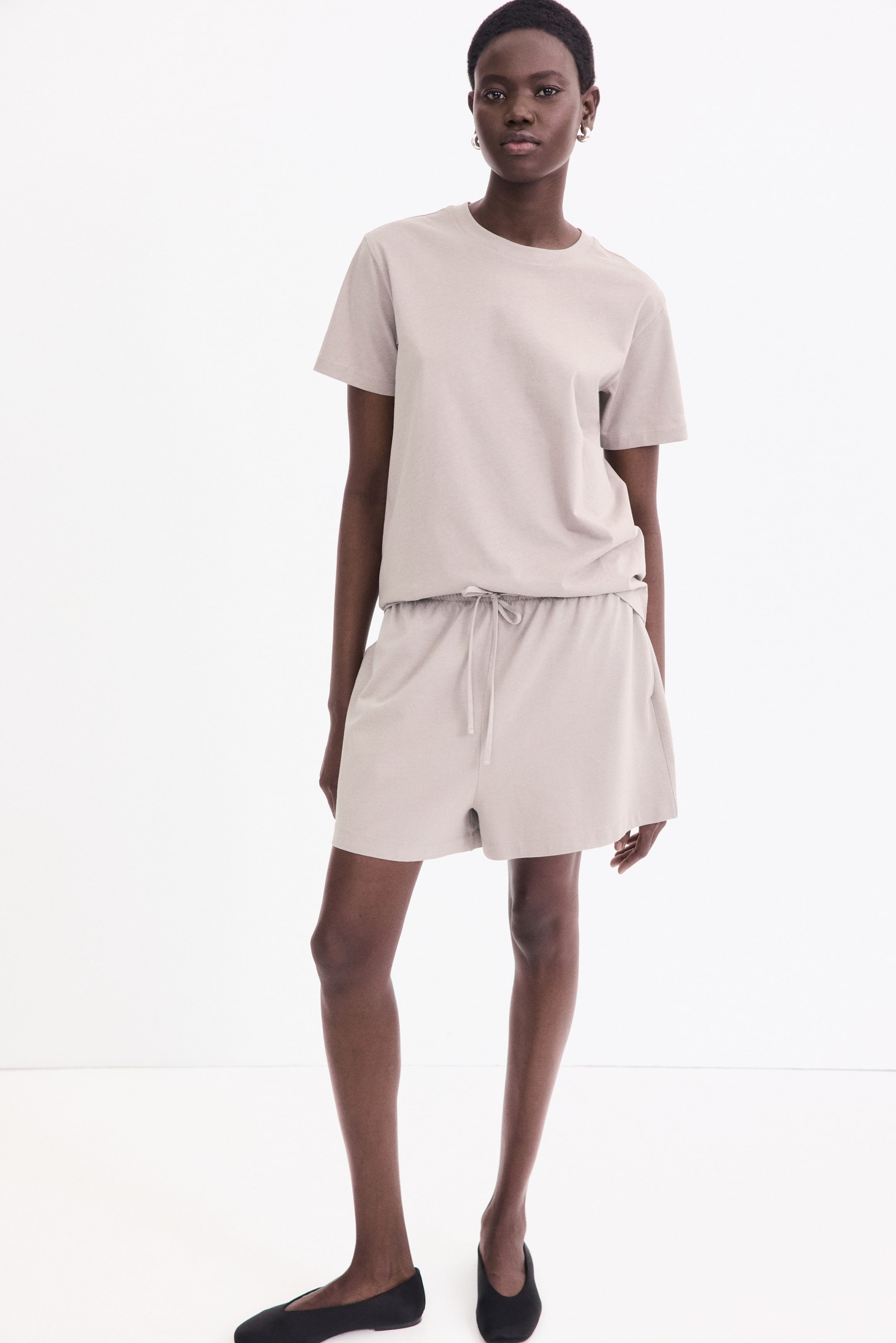 Классические футболки из мягкого хлопкового джерси с велосипедным воротником и прямым подолом.