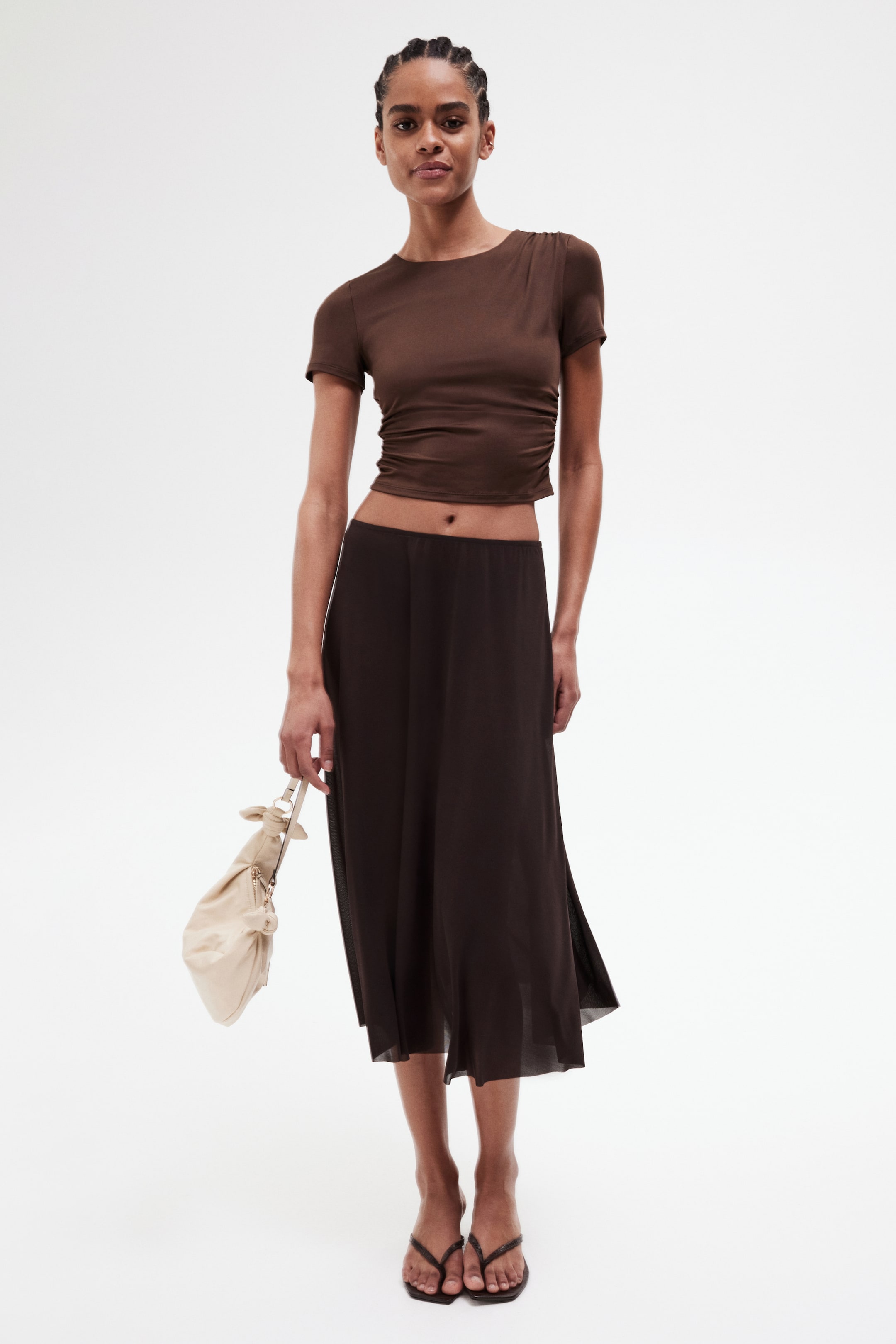 Облегающая короткая футболка с драпировкой, стрейч из джерси, легкий драпированный вид, сборчатые швы на одном плече и по бокам талии