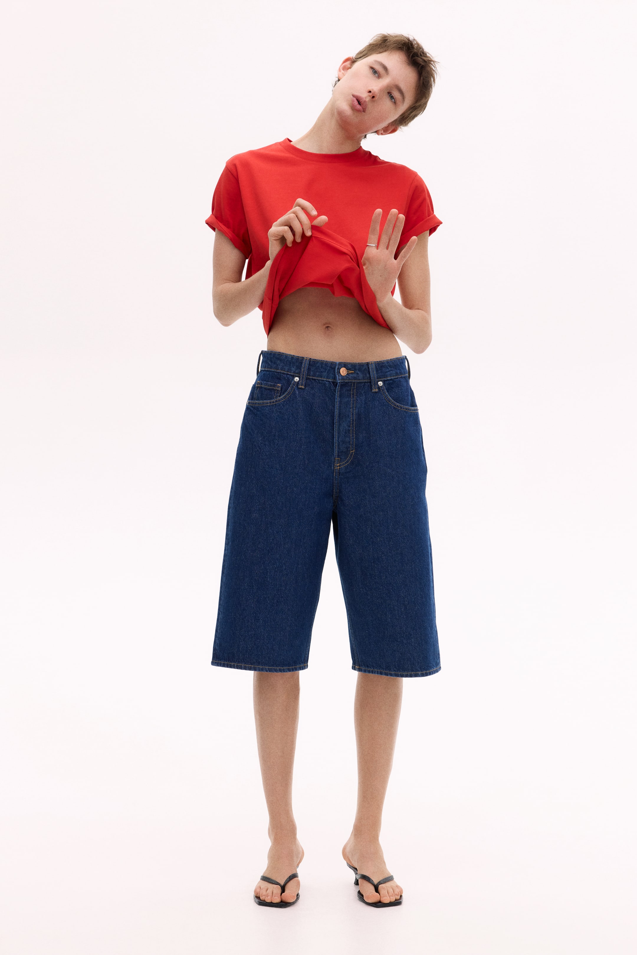 Бренд - H&M; Длина - Стандарт; Длина рукава - Короткий рукав; Материал (состав) - Хлопок; Модель - Стандарт; Тип воротника - Обычный; Узор - Однотонный; Цвет - Красный