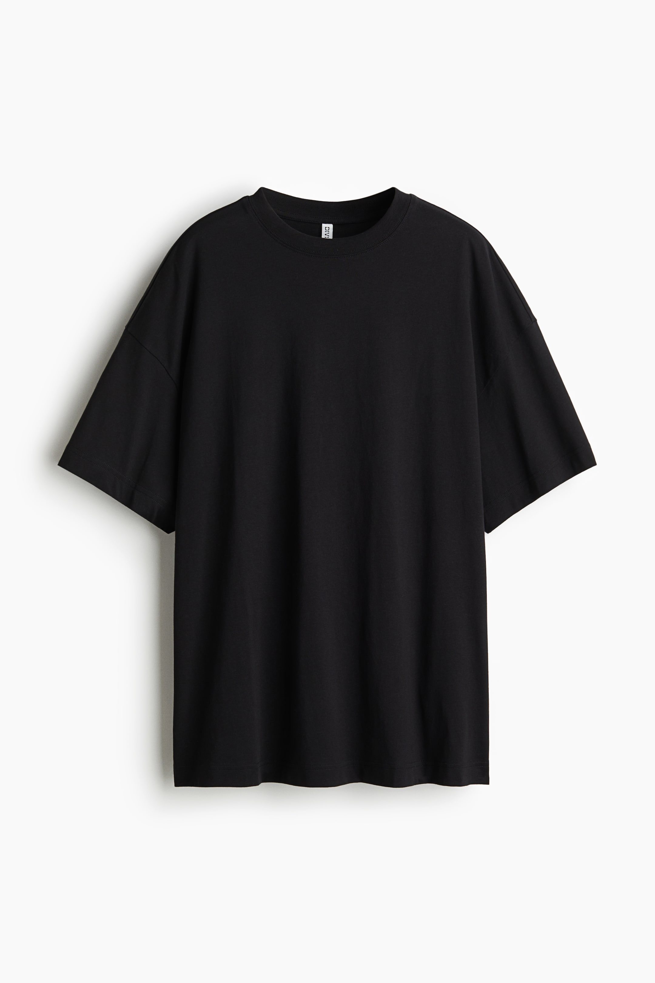 Бренд - H&M; Длина - Длинный; Длина рукава - Короткий рукав; Материал (состав) - Хлопок; Модель - Oversize; Тип воротника - Обычный; Узор - Однотонный; Цвет - Черный