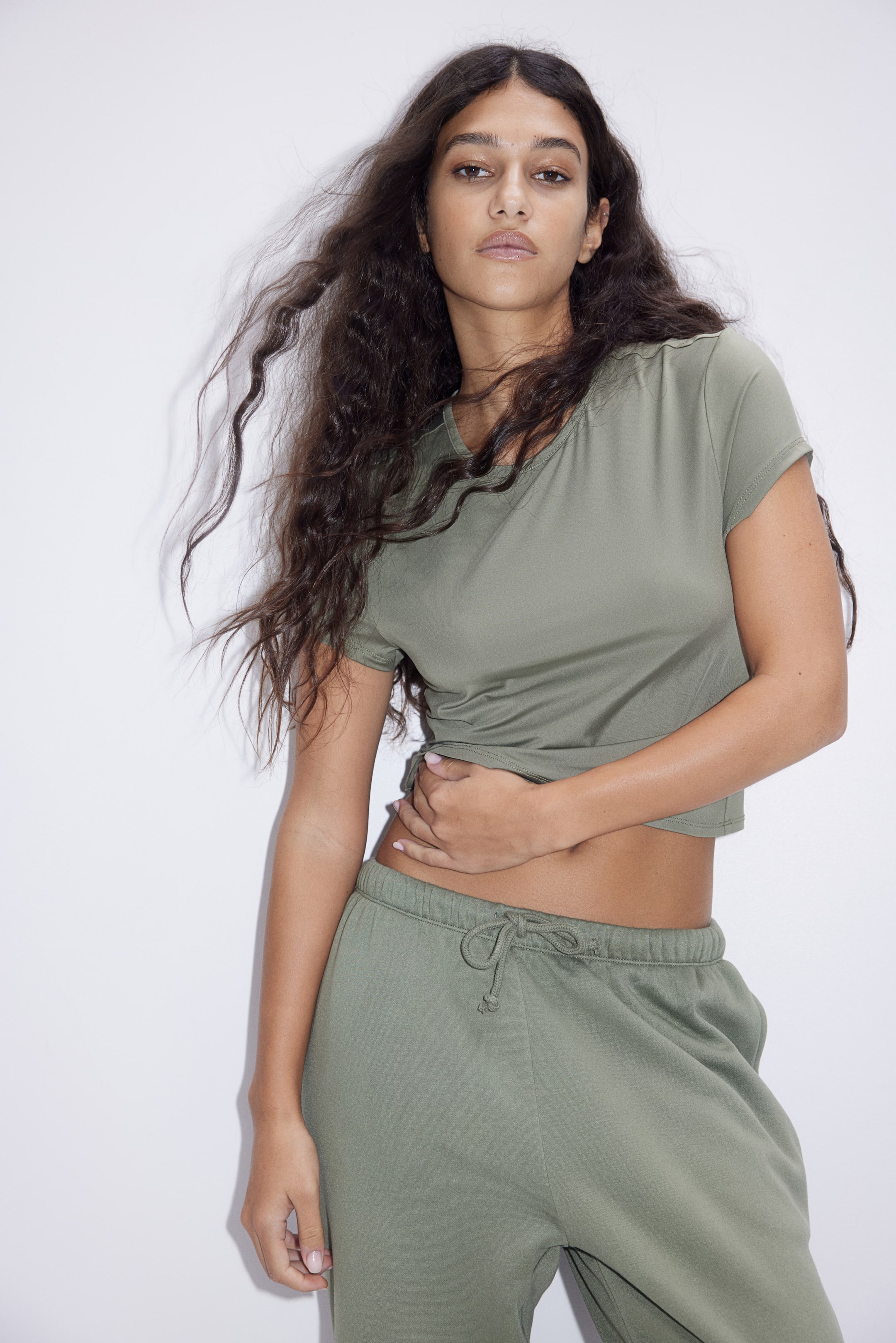 Бренд - H&M; Длина - Короткий; Длина рукава - Короткий рукав; Модель - Узкий; Тип воротника - Обычный; Ткань - Джерси; Узор - Однотонный; Цвет - Хаки