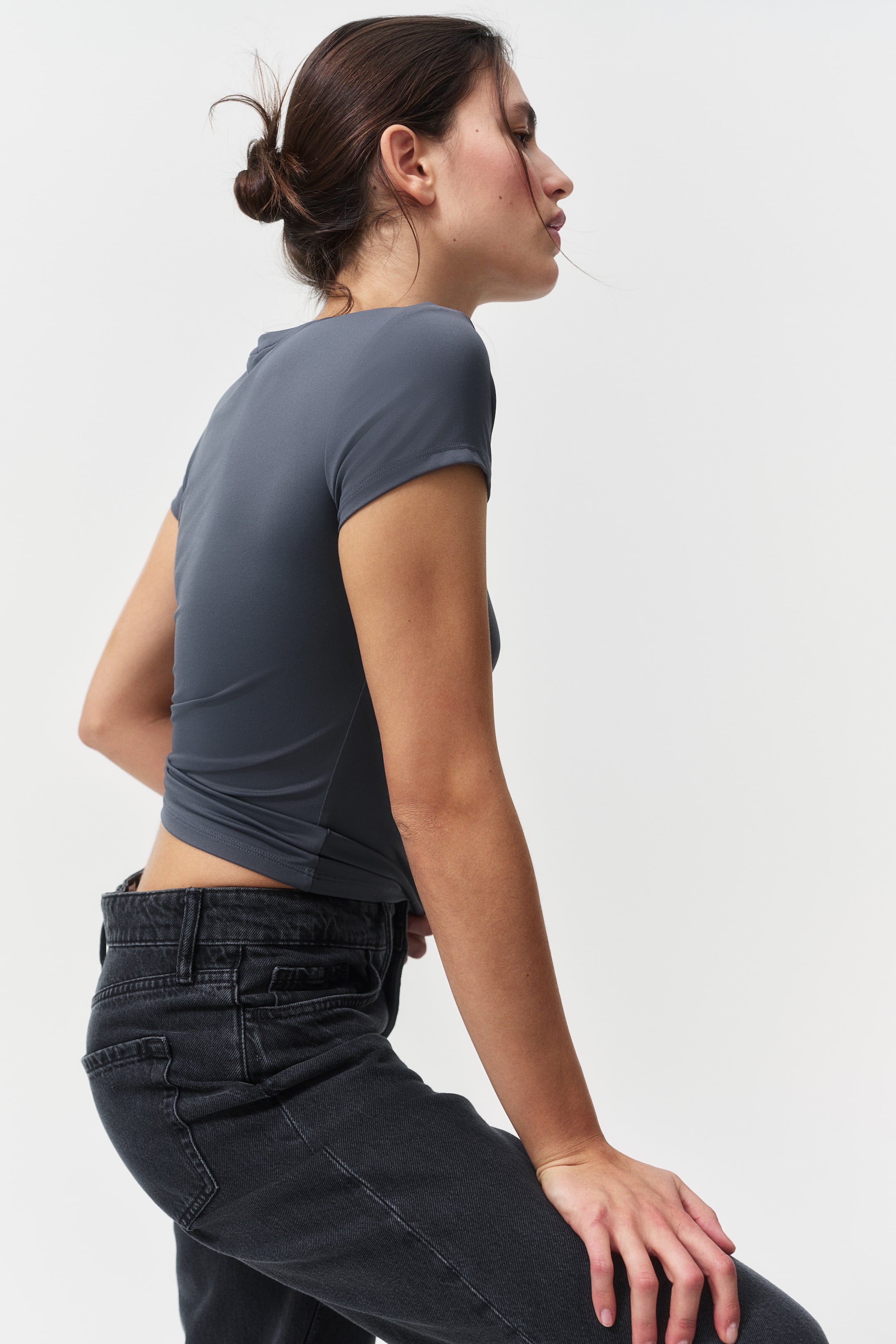 Бренд - H&M; Длина - Стандарт; Длина рукава - Короткий рукав; Модель - Узкий; Тип воротника - Обычный; Ткань - Джерси; Узор - Однотонный; Цвет - Серый