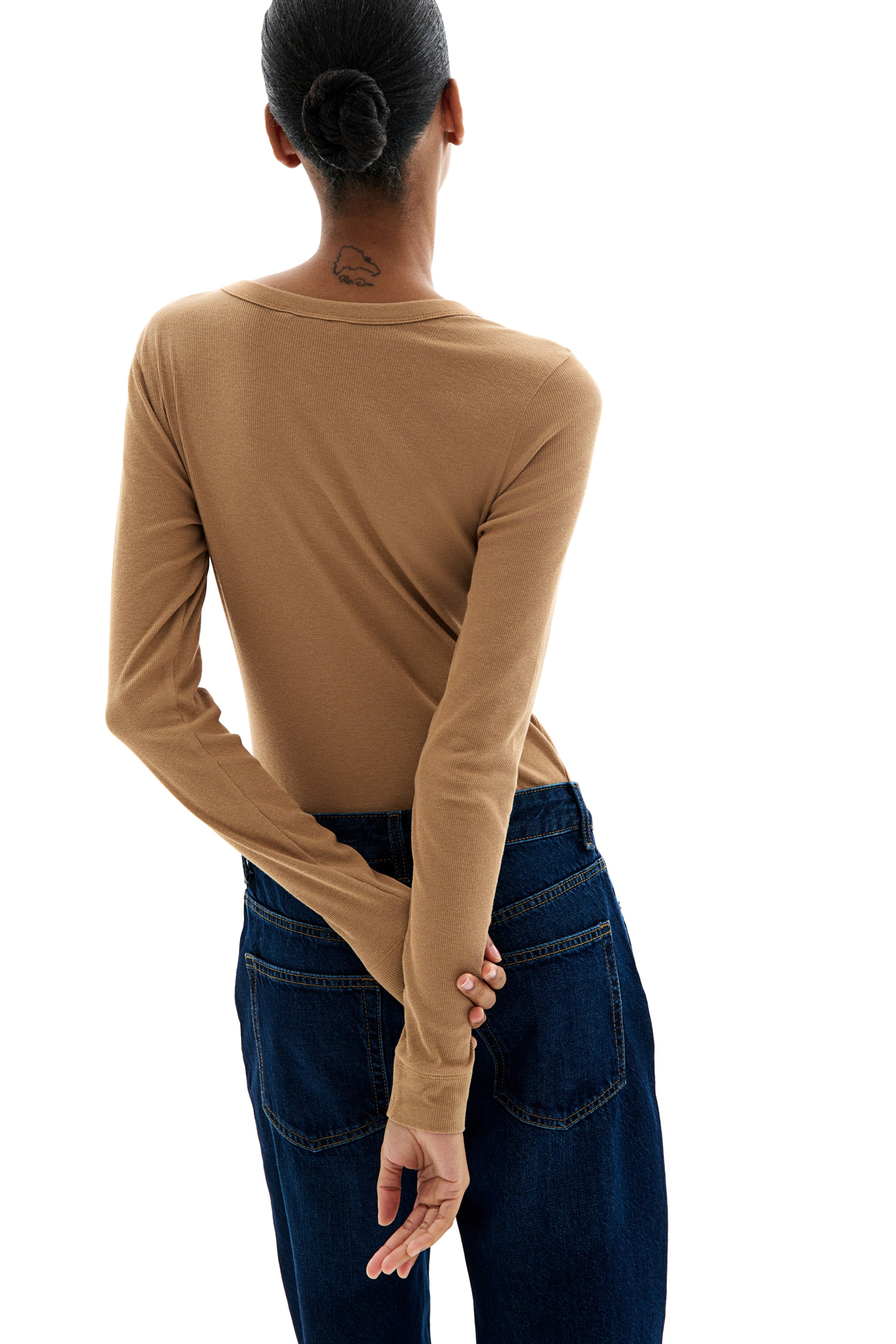 Мягкий верх из хлопковой смеси с рибаной, с круглым воротником, длинными рукавами и приталенным силуэтом