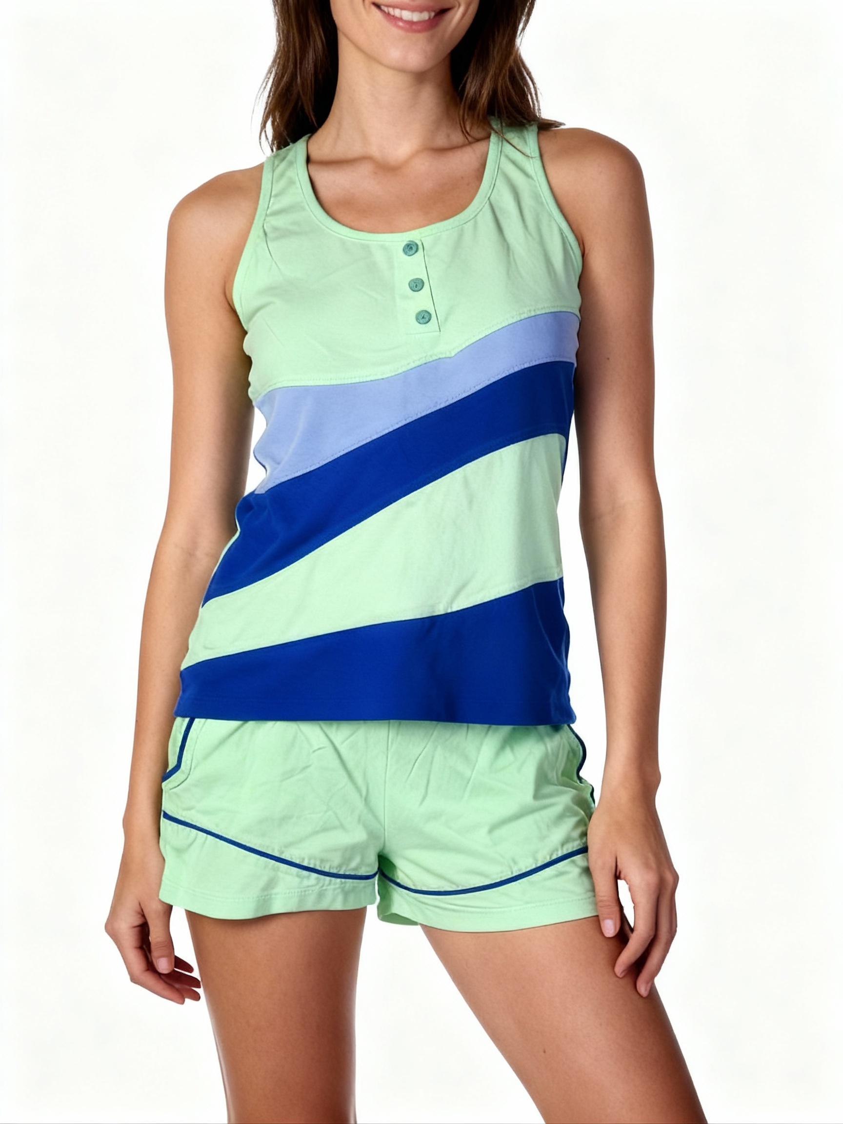 Удобная домашняя одежда свободного кроя, выполненную из эластичного трикотажа шорты и майка