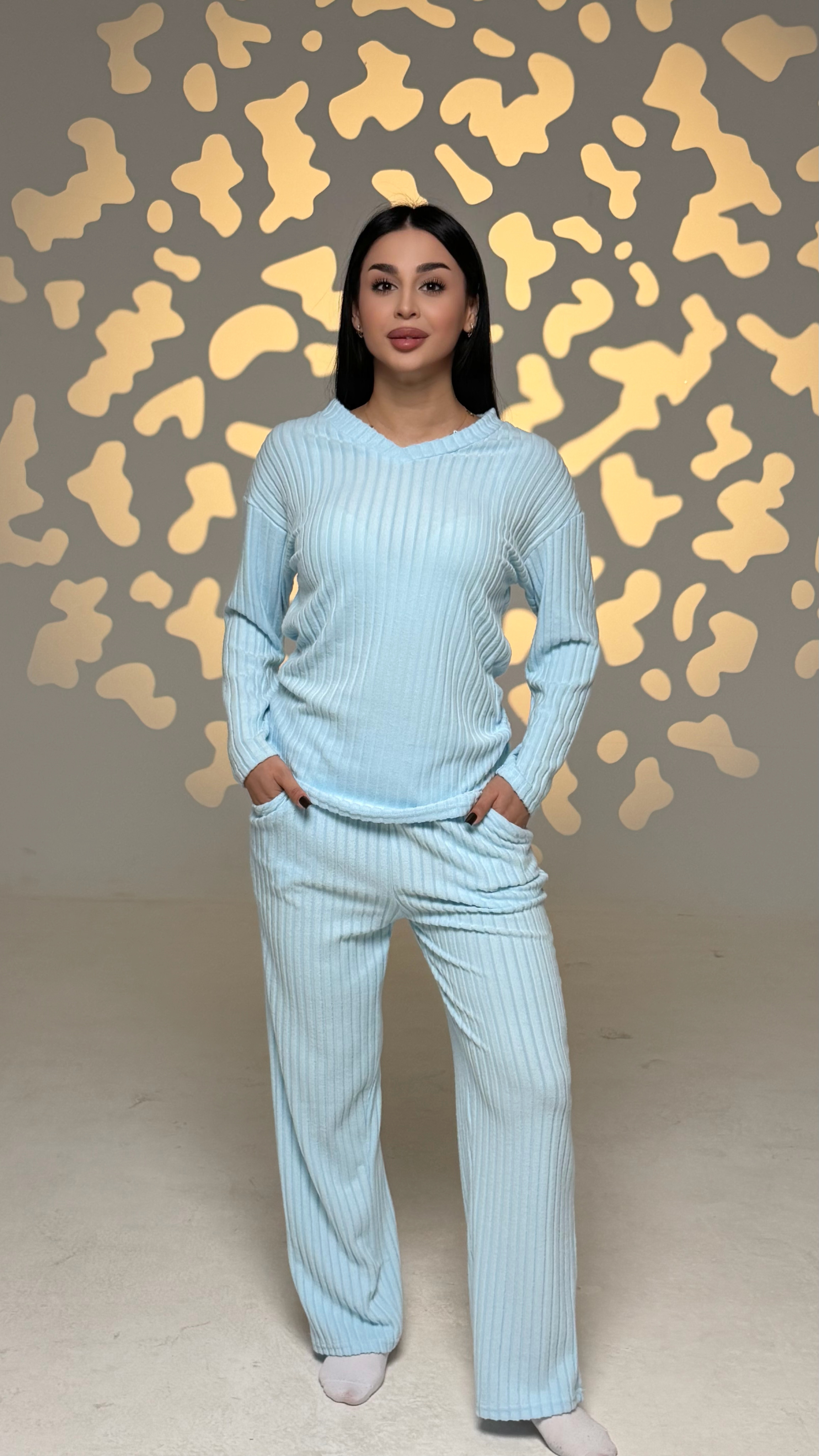 Женский стильный комплект синего цвета для дома и отдыха