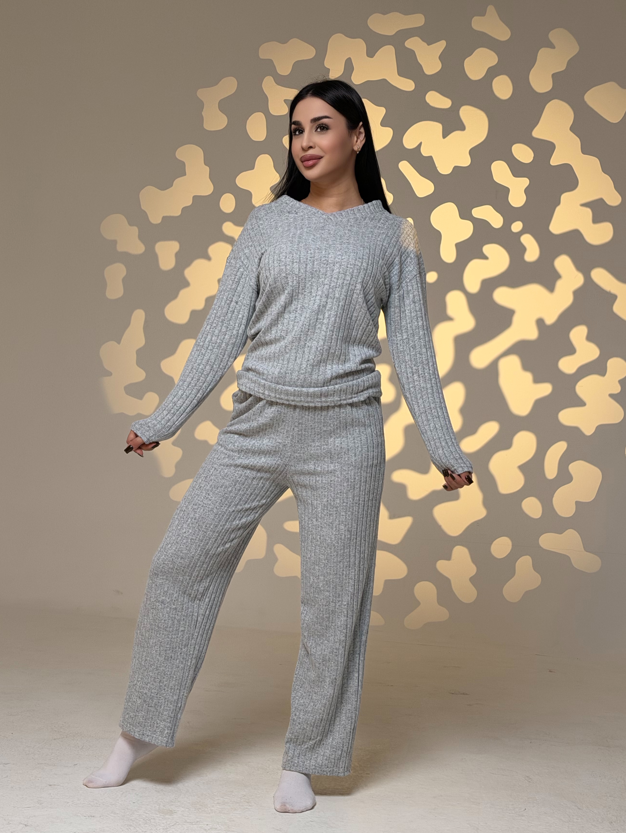Женский стильный комплект серого цвета для дома и отдыха