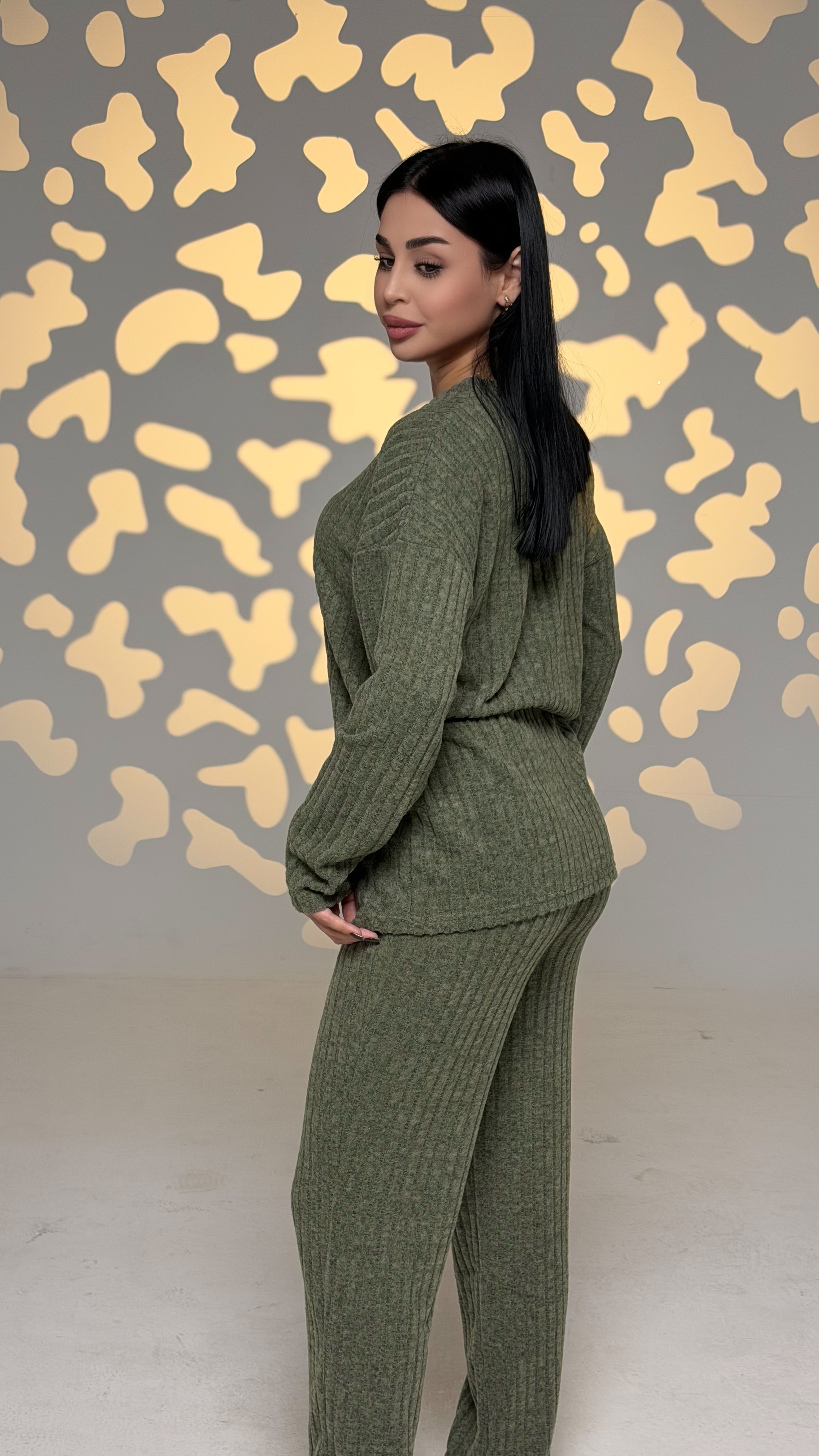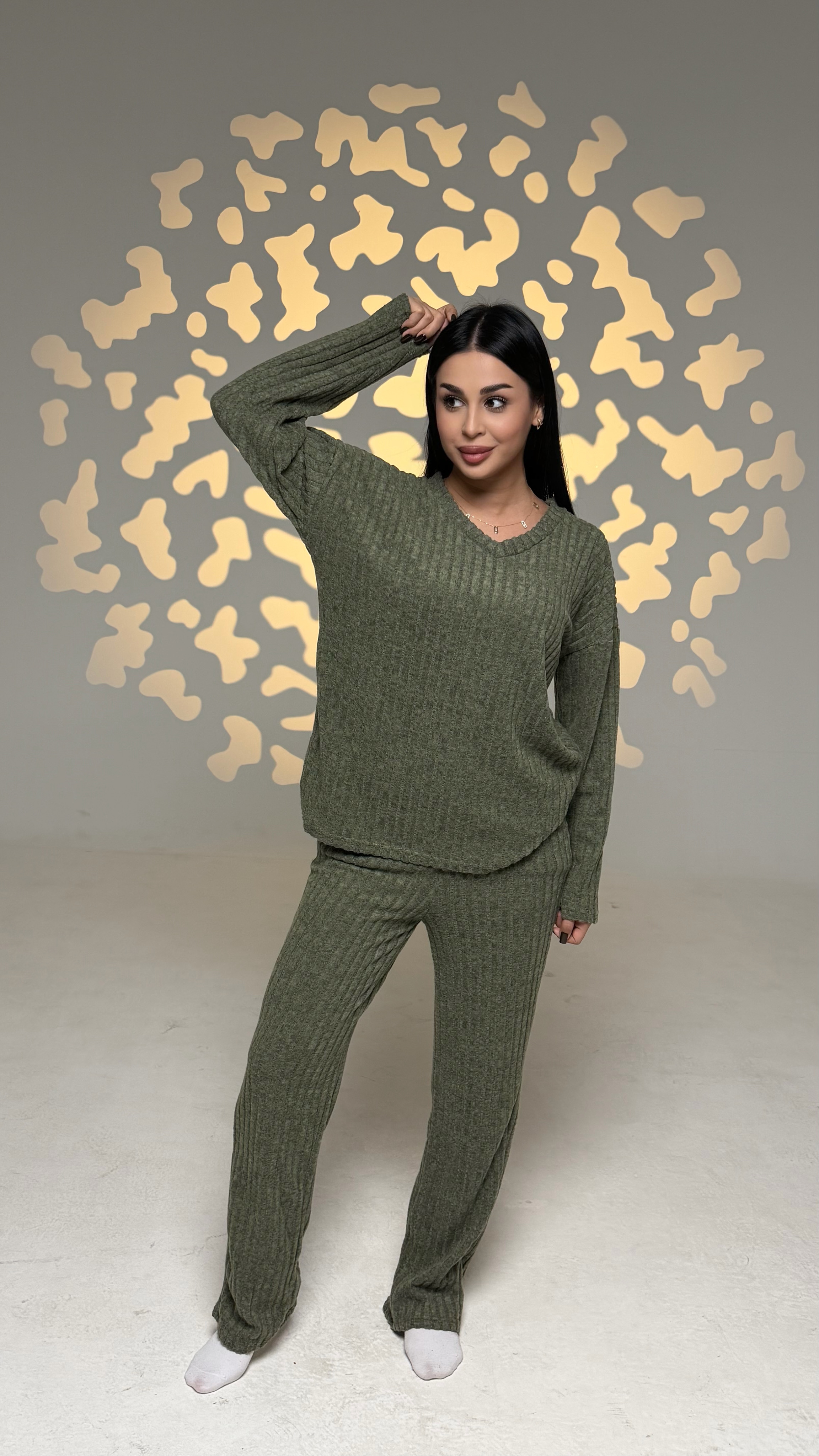 Женский стильный комплект цвета хаки для дома и отдыха