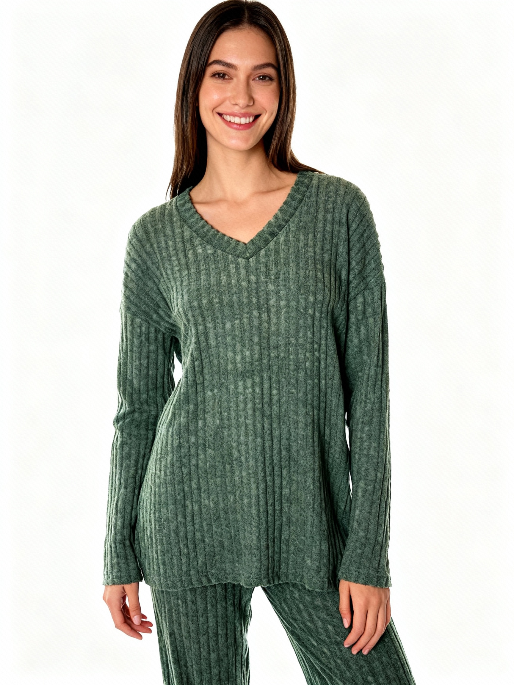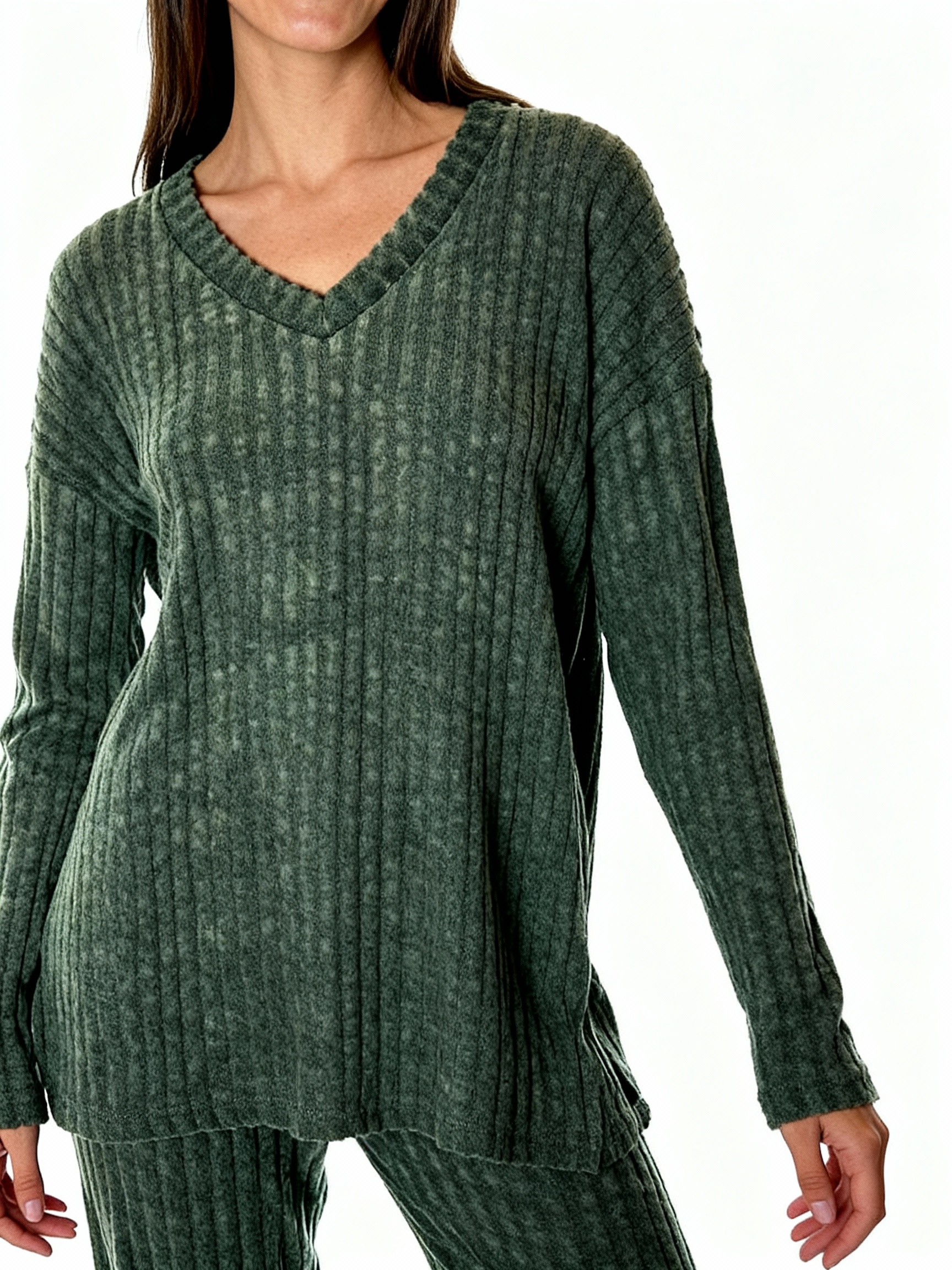 Высота талии - Нормальная; Длина - Стандарт; Длина рукава - Длинный рукав; Материал (состав) - Полиэстер; Модель - Свободный; Страна производства - Китай; Тип воротника - V-вырез; Толщина - Средний; Узор - Однотонный; Цвет - Хаки; Штанина - Широкая