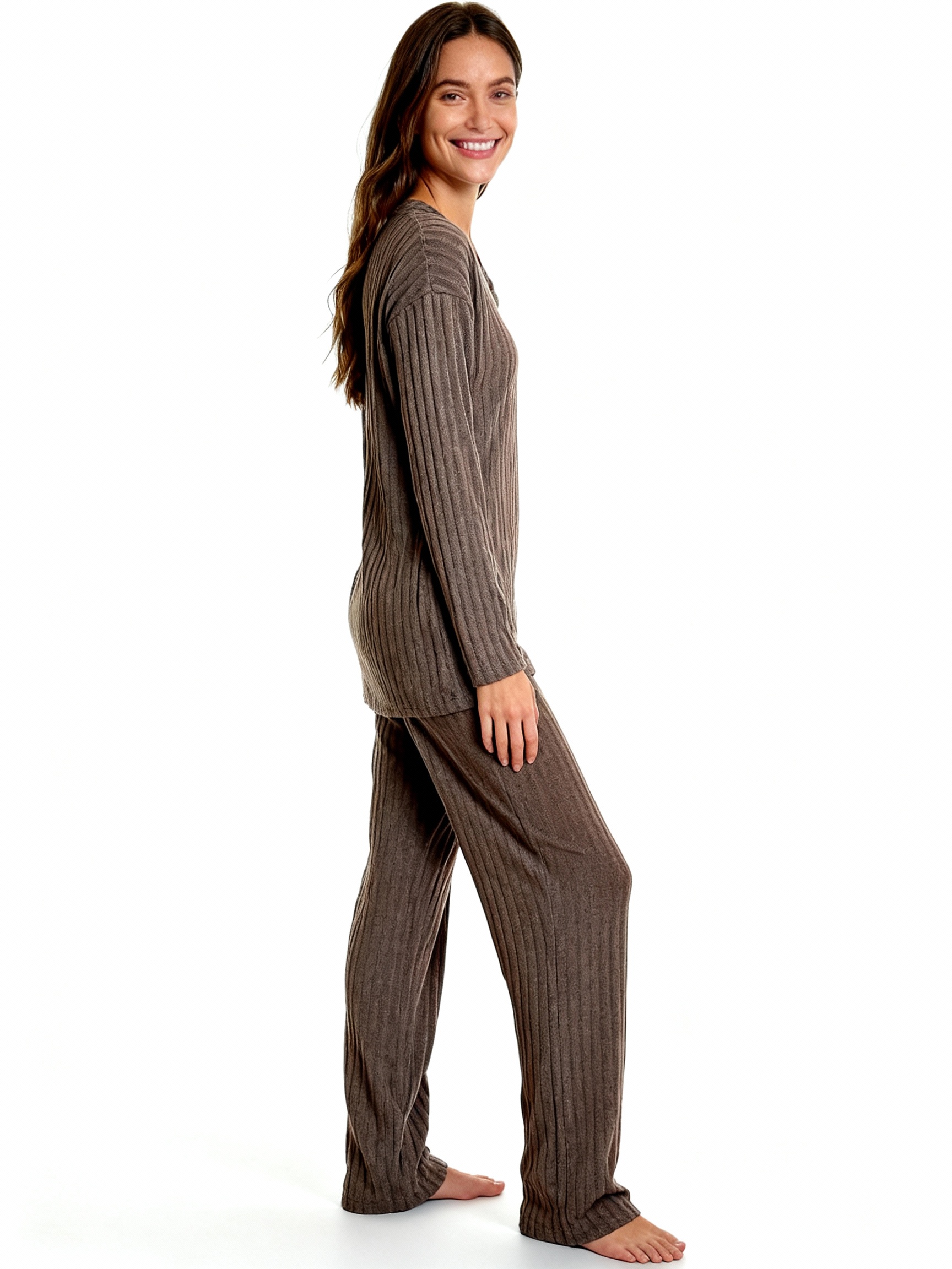 Женский стильный комплект бежевого цвета для дома и отдыха