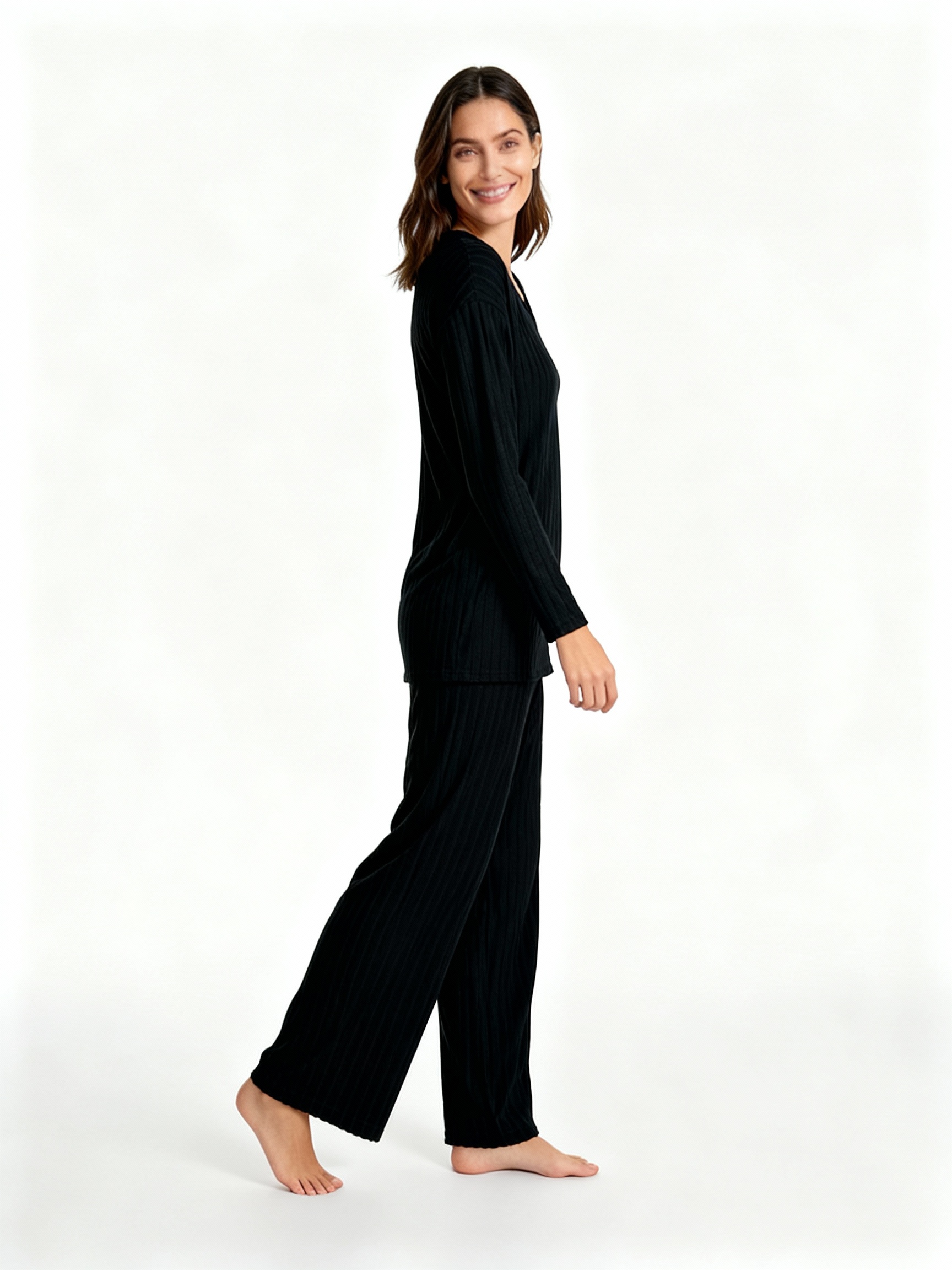 Женский стильный комплект чёрного цвета для дома и отдыха