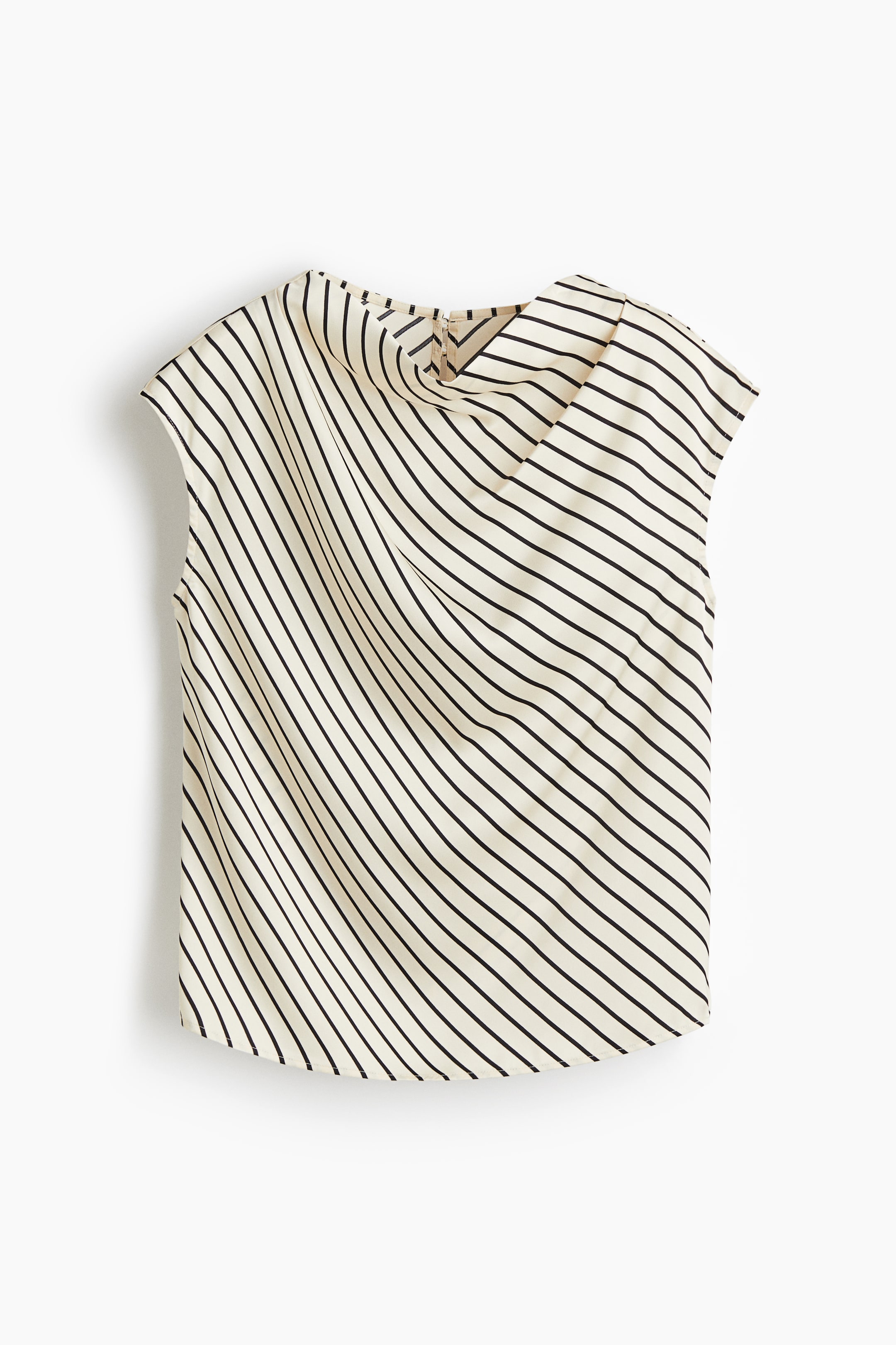 Бренд - H&M; Длина - Стандарт; Длина рукава - Короткий рукав; Материал (состав) - Полиэстер; Модель - Стандарт; Тип воротника - V-вырез; Ткань - Атлас; Толщина - Тонкий; Узор - Полосатый; Цвет - Экрю