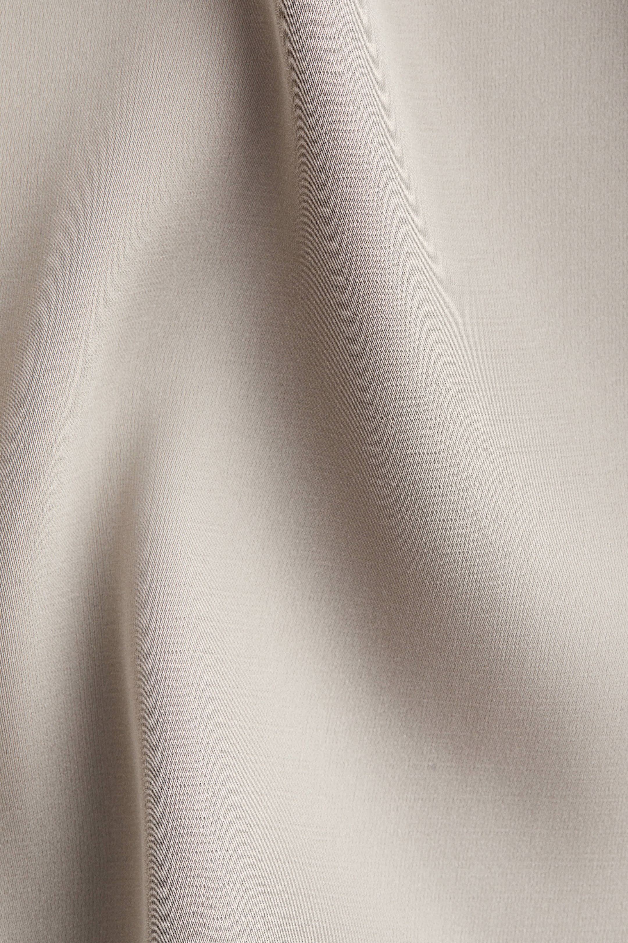 Блузка из блестящей ткани с V-образным вырезом, длинными рукавами с манжетами на пуговицах и закругленным низом