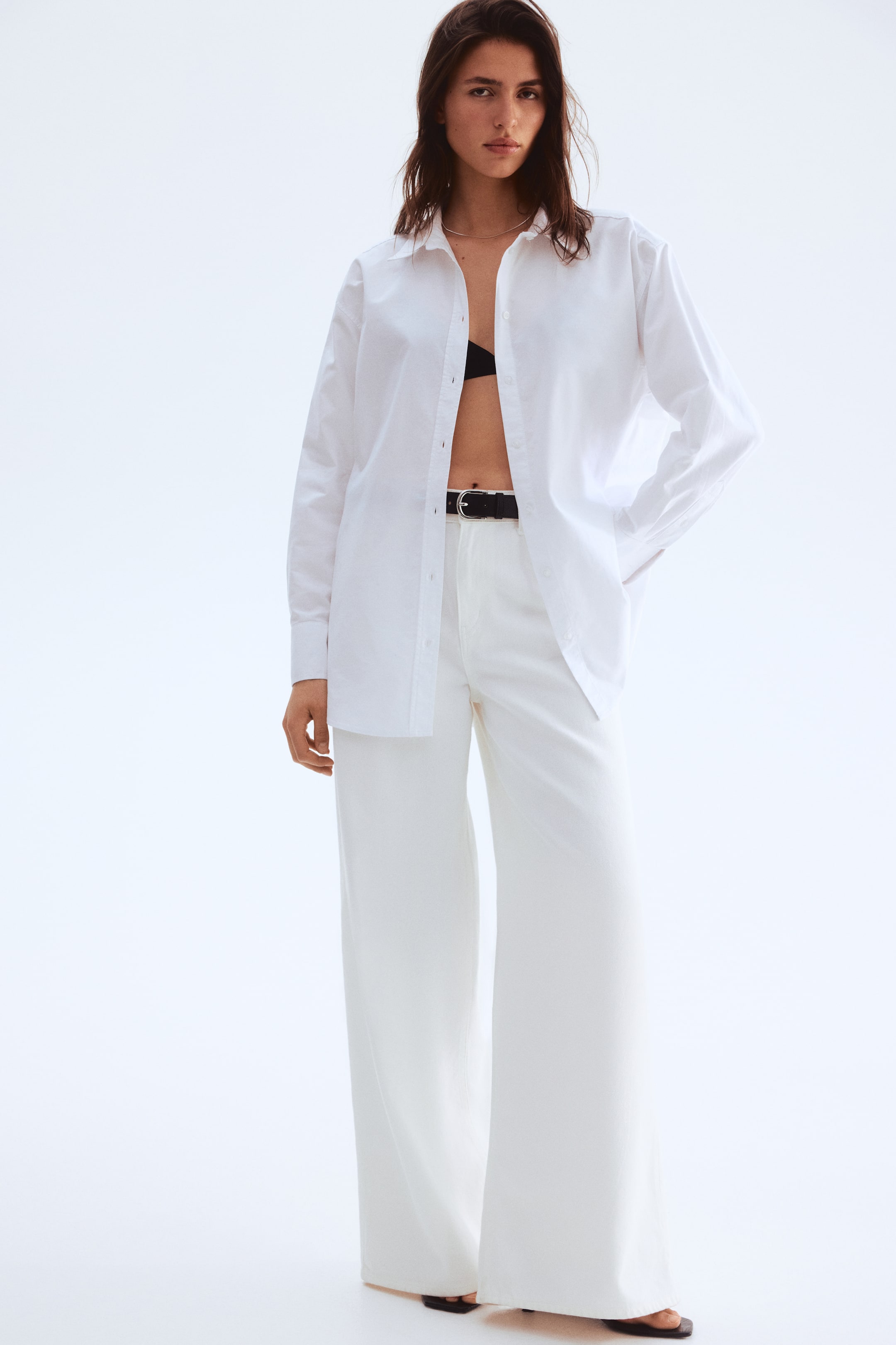 Бренд - H&M; Длина - Стандарт; Длина рукава - Длинный рукав; Материал (состав) - Хлопок; Модель - Свободный; Тип воротника - Воротник рубашки; Ткань - Оксфорд; Узор - Однотонный; Цвет - Белый