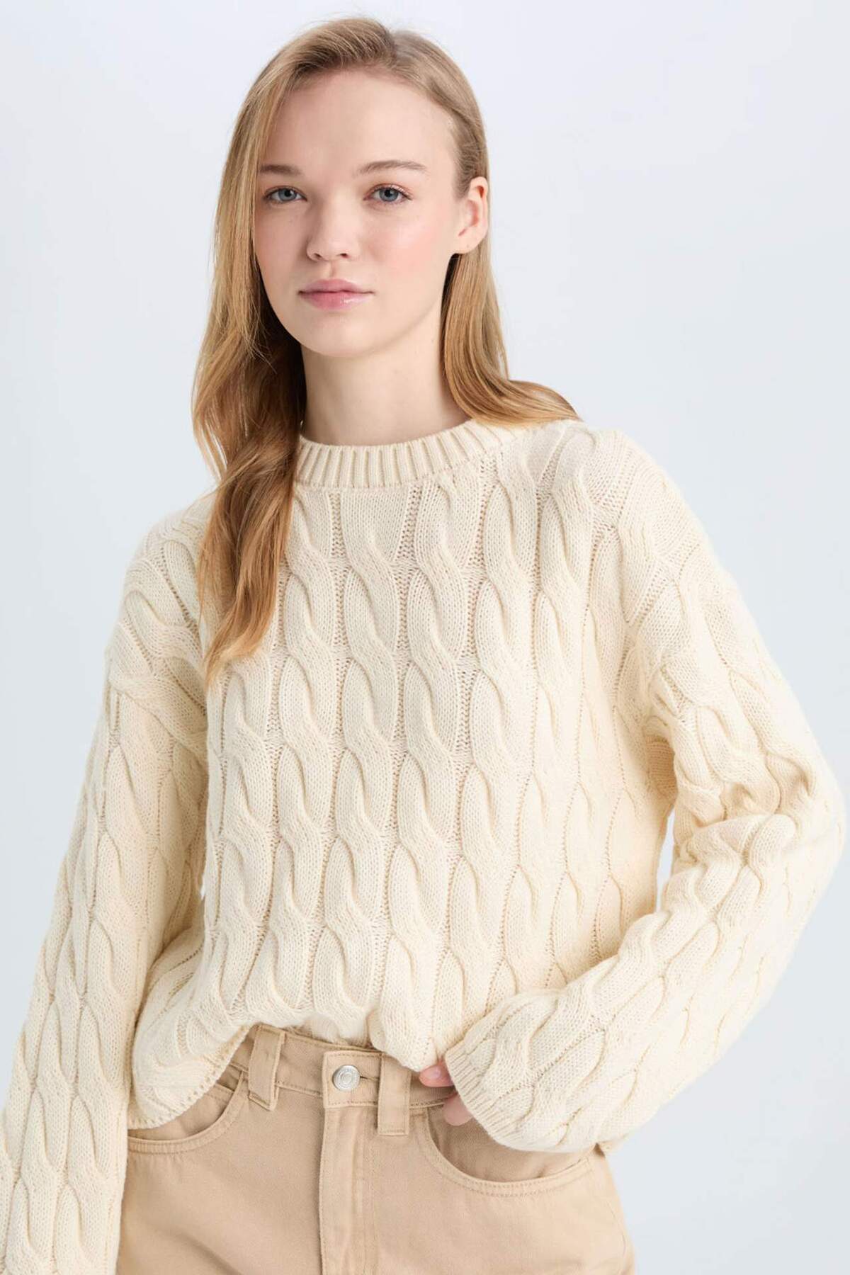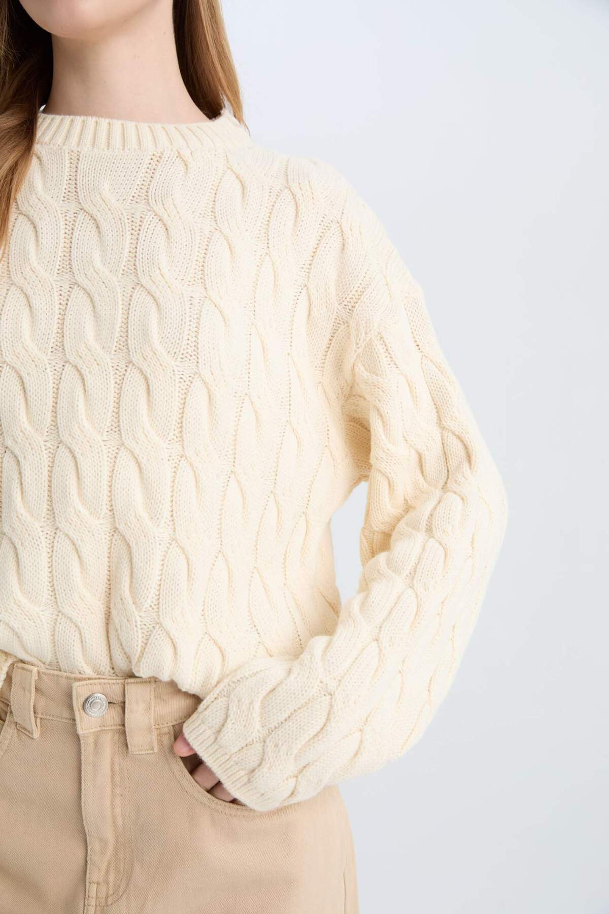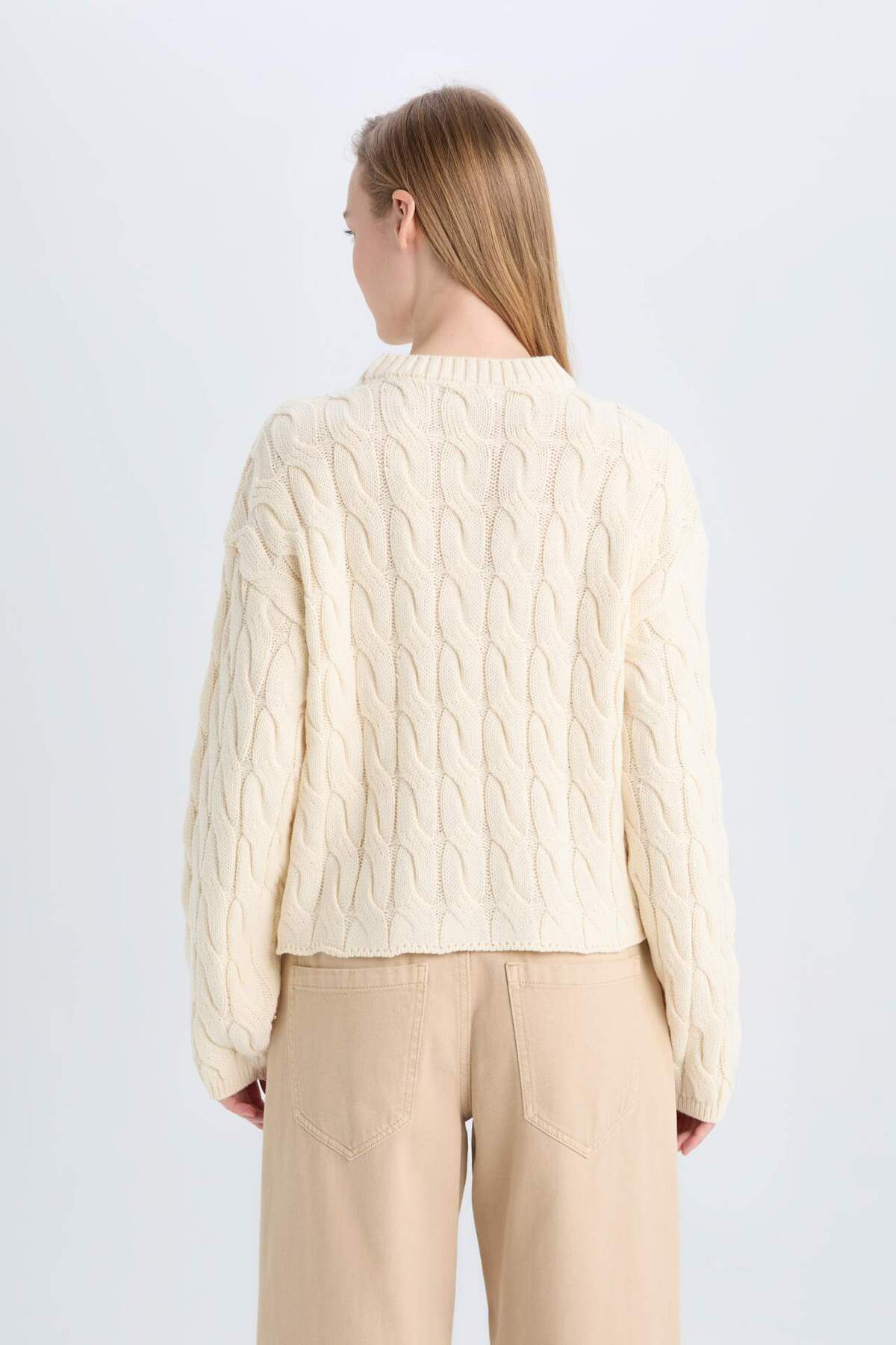 Свитер с воротником-хомутом и косой вязкой DeFacto