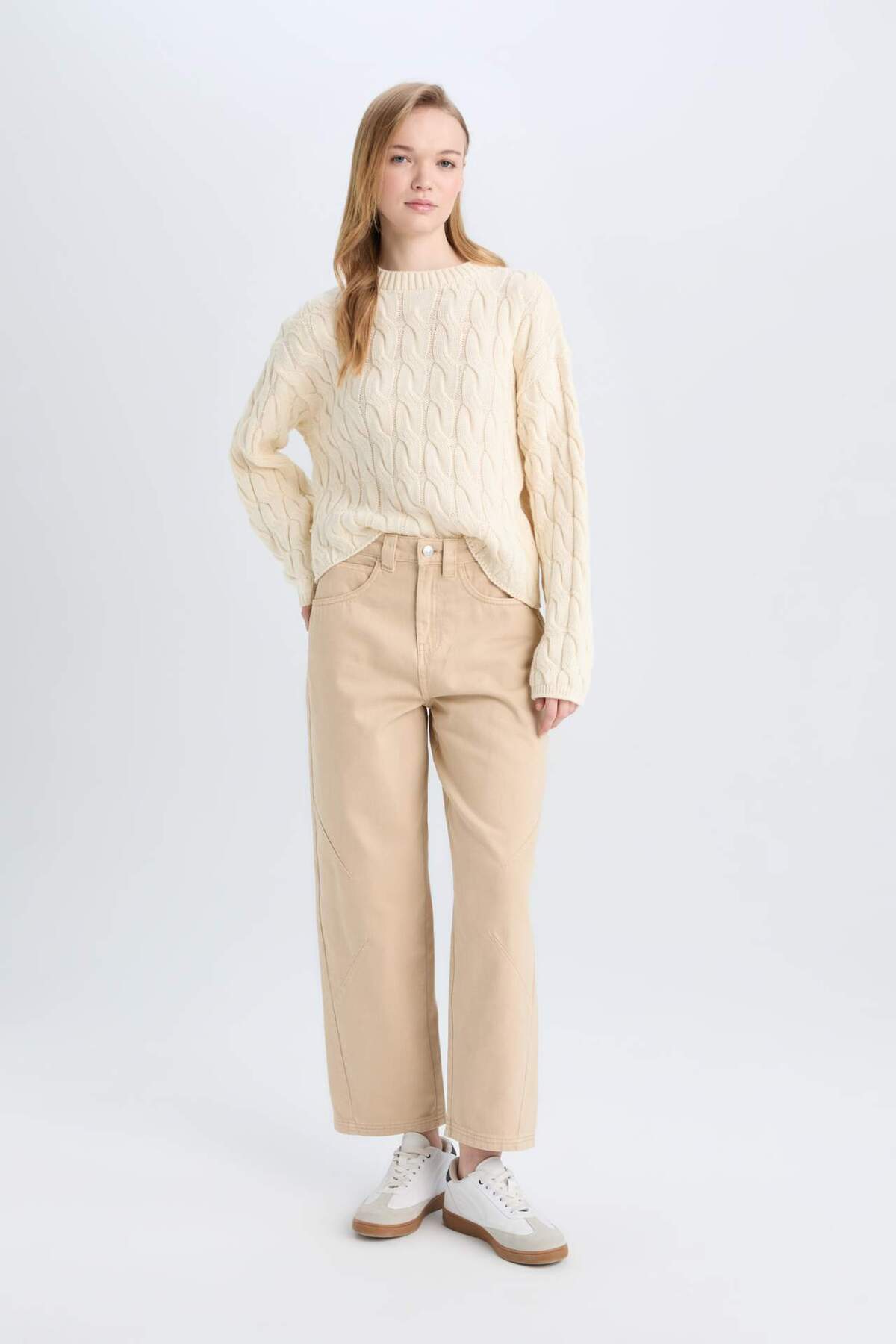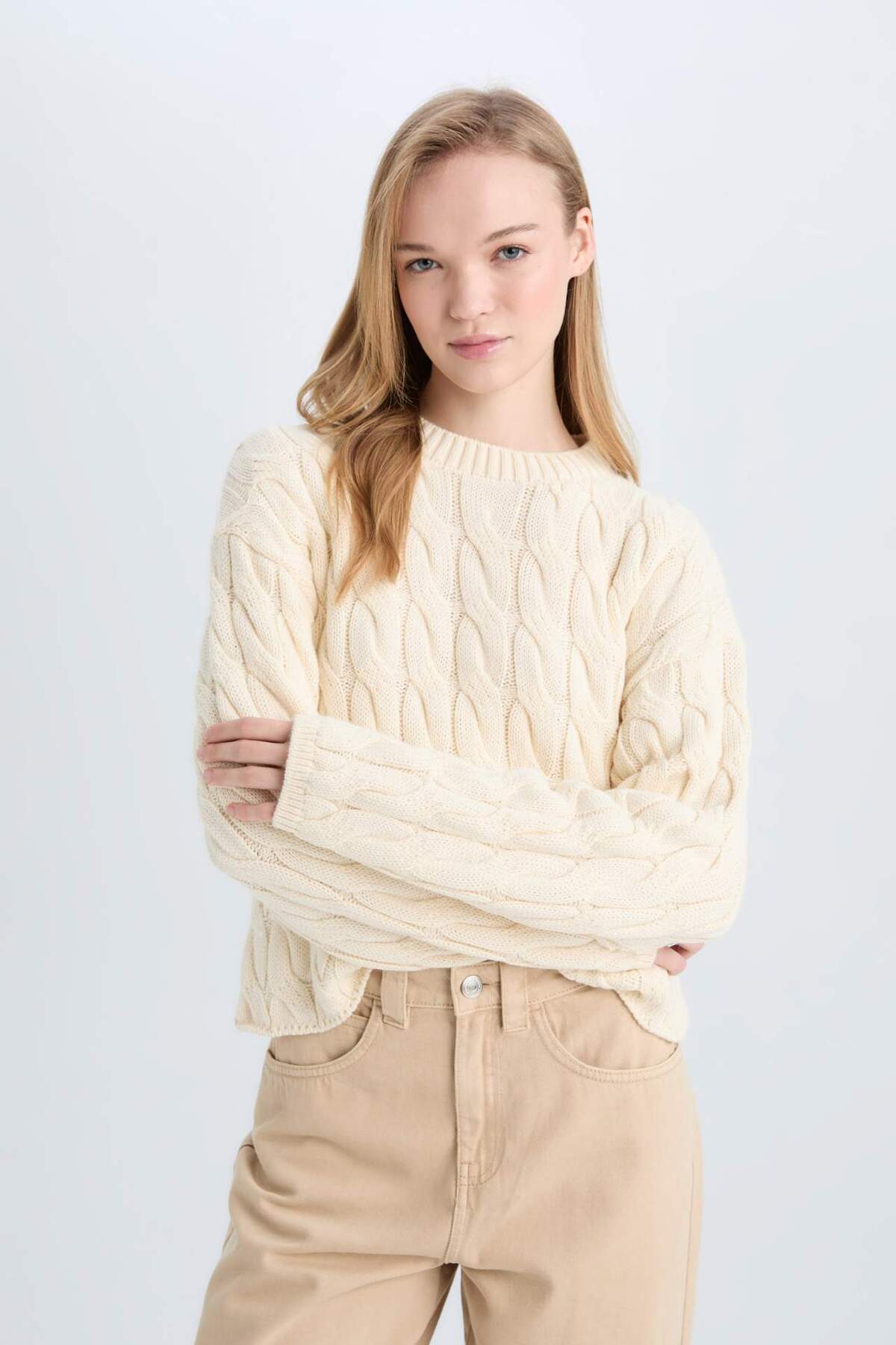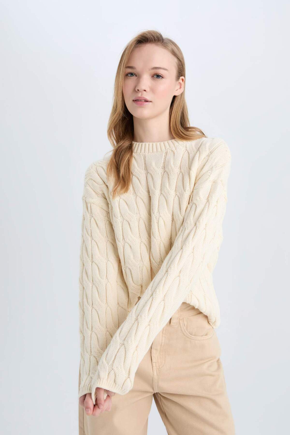 Свитер с воротником-хомутом и косой вязкой DeFacto